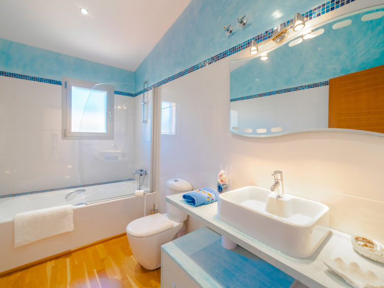 Stor moderne 6-værelses villa på 500 m2 med plads til 8 personer. Villaen er bygget i 2005 og er på to etager. Villaen ligger i et roligt og skønt solrigt område kun 60 m fra havet. Fra altanen er der flot udsigt over havet, bjergene og byen.