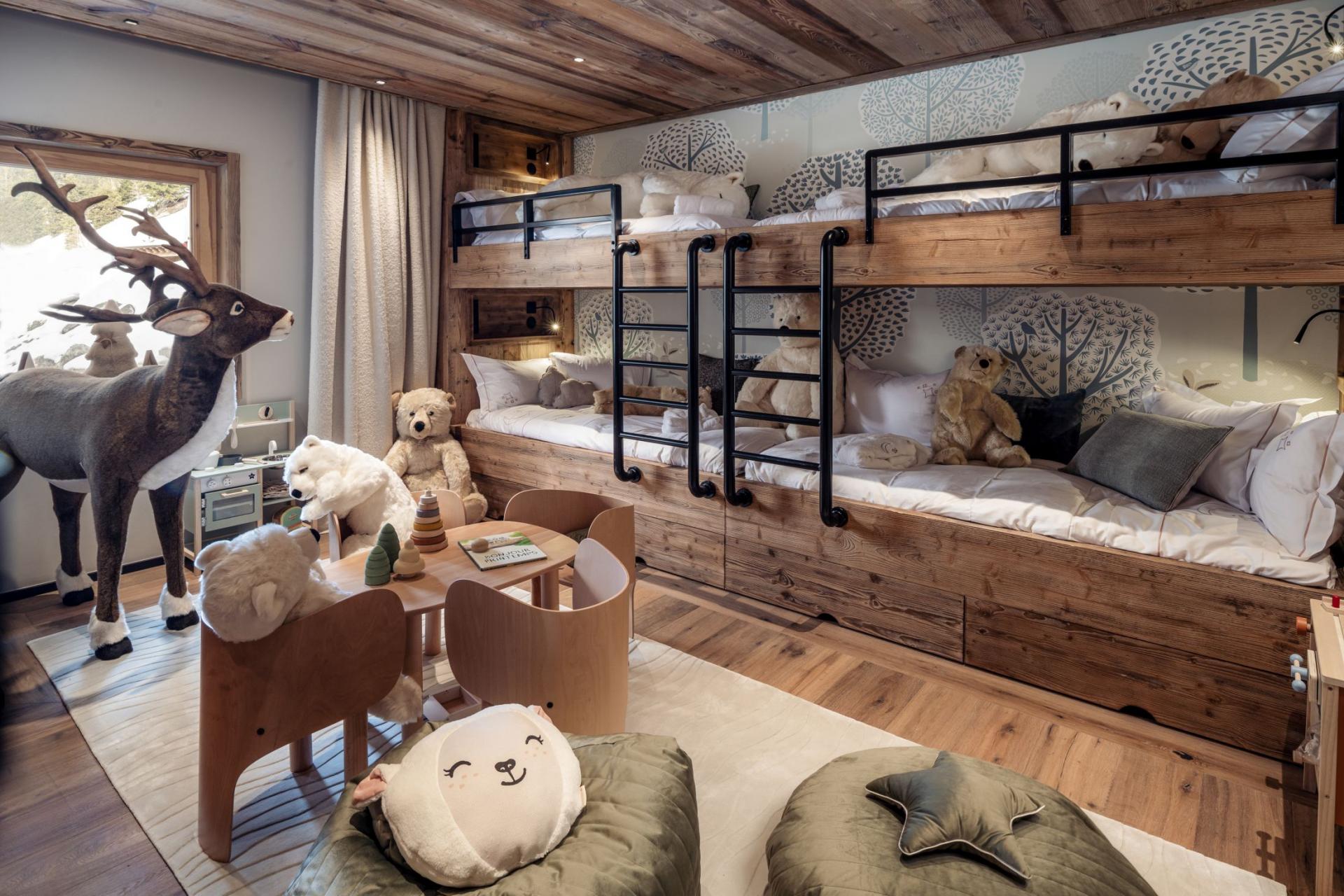 All of Chalet Luna's 7 bedrooms share equally elegant designs, adorned with smooth alpine woods and luxury furnishings. Guaranteeing a night in luxury, the majority of bedrooms showcase fabulous, panoramic views sprawled across large picture windows. For further luxury, some bedrooms take advantage of adjoining balconies. Cosy children's rooms, equipped with central play areas, present the ideal kid's den to accommodate the little ones together. The spacious, modern en-suite facilities create a more enhanced experience for each bedroom, which also benefit from the same magnificent mountain scenery.