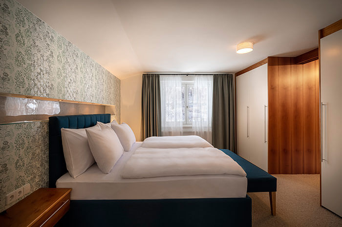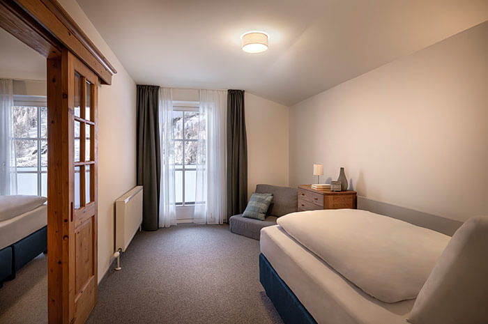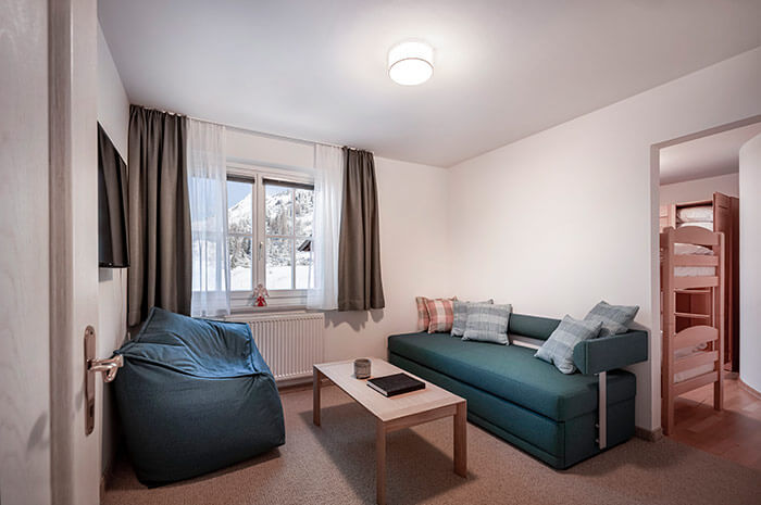 - 1 familieværelse med dobbeltseng og adgang til separat børneværelse med køjeseng