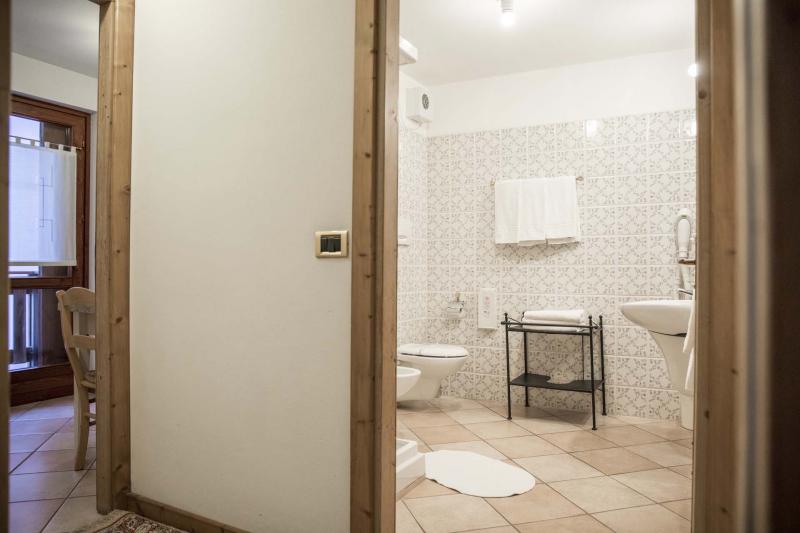 Hyggeligt loftværelse med fritliggende træbjælker. Dette familieværelse består af to separate værelser, hvilket giver mere privatliv end blot ét rum, og er ideel for familier med små børn. Hvert værelse har eget badeværelse med bruser, og balkon med udsigt over Tonale bjergene.
