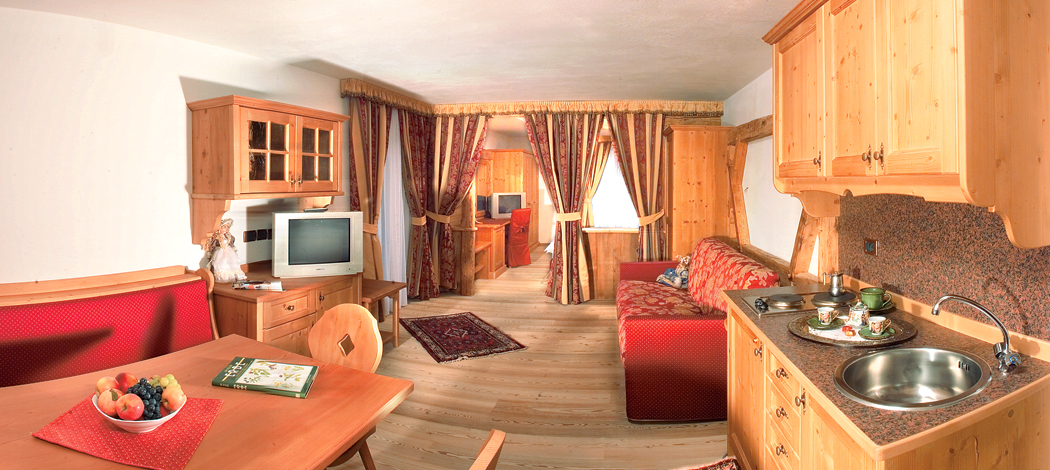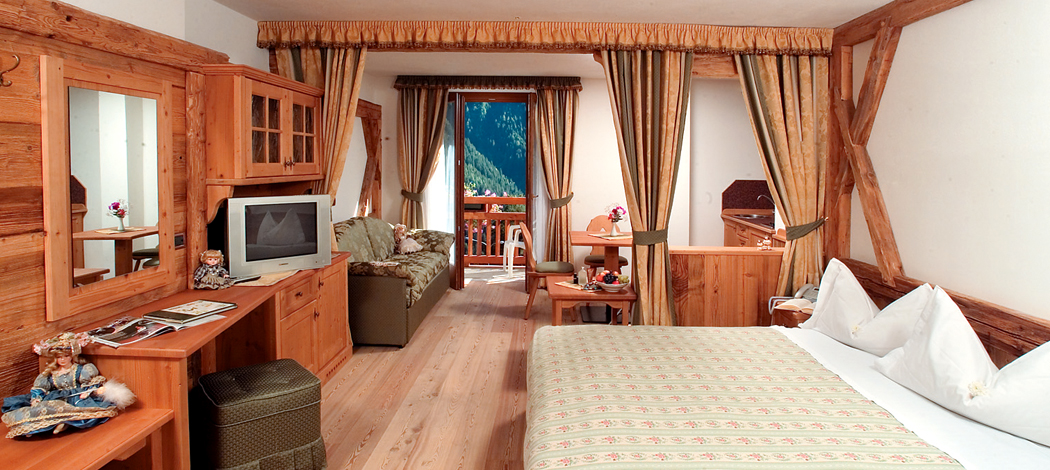Møbleret i træ, lærketræsgulv og himmelseng.  Værelserne har balkon med udsigt til Presanella gletsjeren, wc/bad m. brus, telefon, tv, hårtørrer, minibar og sikkerhedsboks.