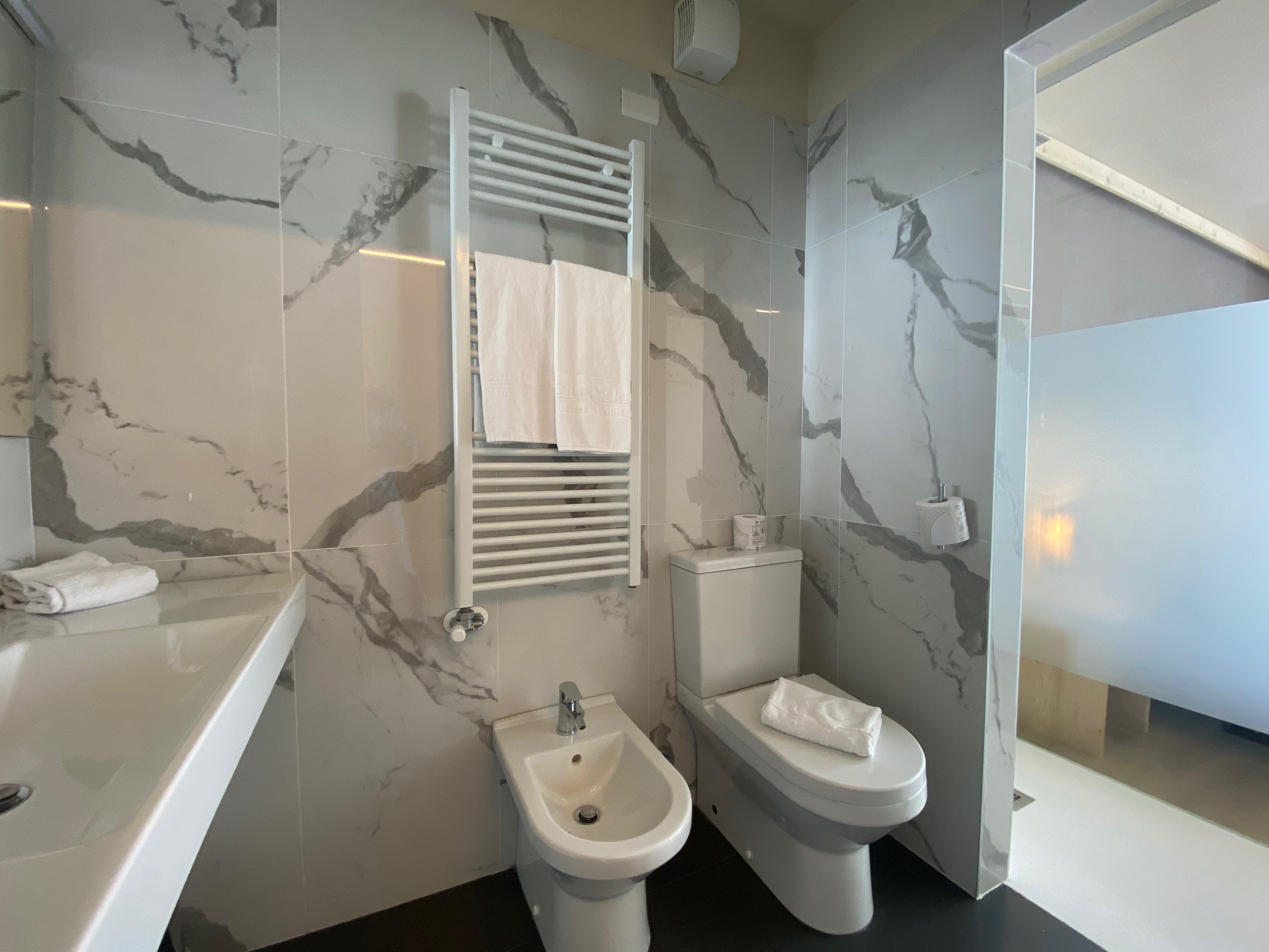 - Rummelige standardværelser med små badeværelser med brusebad.