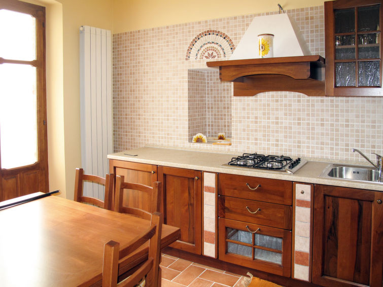 4-værelse-rækkehus 100 m2 på 2 etager med plads til 7 personer. Rustikt og smagfuld indrettet: 1 værelse med 1 seng og 1 fransk seng (160 cm). Køkken (ovn, 4 gasblus, køleskab, Brødrister, fryser, elektrisk kaffemaskine) med spisebord og TV. Brus/WC. Overetage: stue/soveværelse med 1 dobbelt sovesofa, spisebord og TV. Udgang til altan. 1 værelse med 1 dobbeltseng. Lille køkken (ovn, 4 gasblus, køleskab, fryser). Brus/WC. Gasopvarmning. Lille altan, havesiddeplads. Havemøbler. Til benyttelse: vaskemaskine. Internet (trådløs LAN [WLAN], gratis). Bemærk venligst: ikke-ryger lejlighed. 2 husdyr/hunde tilladt.