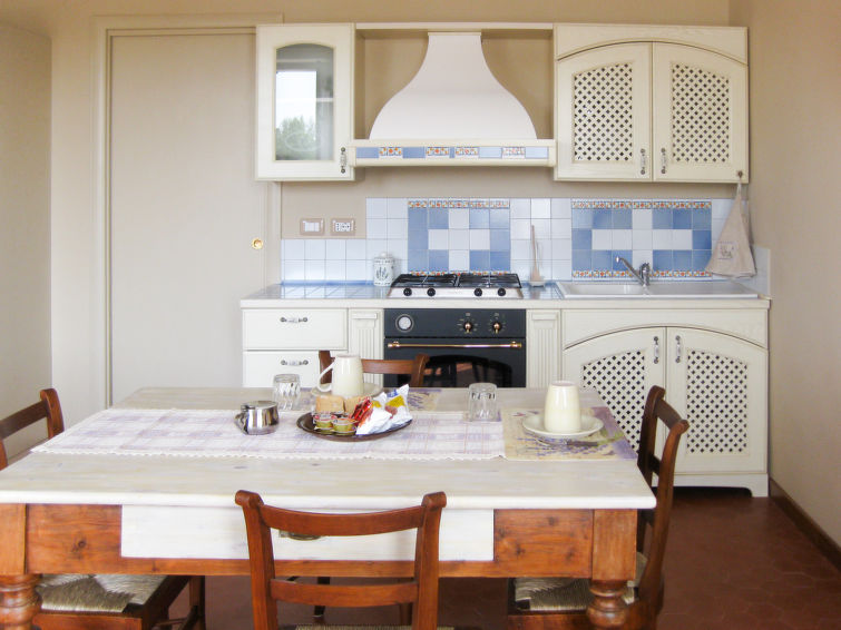 3-værelse-lejlighed 55 m2 med plads til 4 personer. Rustikt og smagfuld indrettet: stue/spisestue med spisebord, TV og klimaanlæg. 1 værelse med 1 dobbeltseng. 1 mindre værelse med 2 senge. Udgang til altan. Lille, åbent køkken (ovn, 4 gasblus, køleskab, Brødrister, kedel, fryser, elektrisk kaffemaskine). Brus/WC. Gasopvarmning. Lille altan, havesiddeplads. Havemøbler. Til benyttelse: internet (trådløs LAN [WLAN], gratis). Bemærk venligst: ikke-ryger lejlighed. 2 husdyr/hunde tilladt.