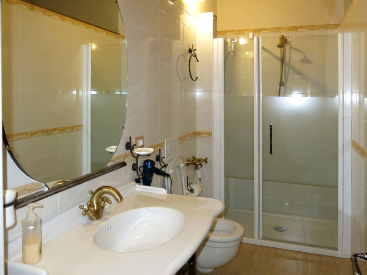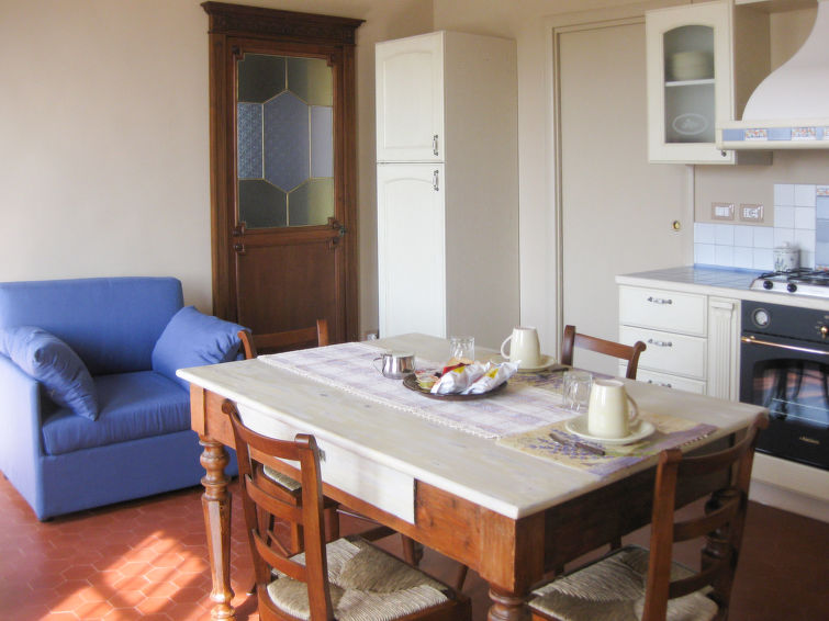 4-værelse-lejlighed 75 m2 med plads til 9 personer. Rustikt og smagfuld indrettet: 1 værelse med 1 seng og 1 fransk seng (160 cm), brus/WC. Gennemgangsværelse med 2 senge. 1 værelse med 1 seng og 1 dobbeltseng. Køkken/alrum (ovn, 4 Induktionskomfur, køleskab, Brødrister, fryser, elektrisk kaffemaskine) med spisebord og TV. Brus/WC. Gasopvarmning. Havesiddeplads. Havemøbler. Til benyttelse: internet (trådløs LAN [WLAN], gratis). Bemærk venligst: ikke-ryger lejlighed. 2 husdyr/hunde tilladt.
