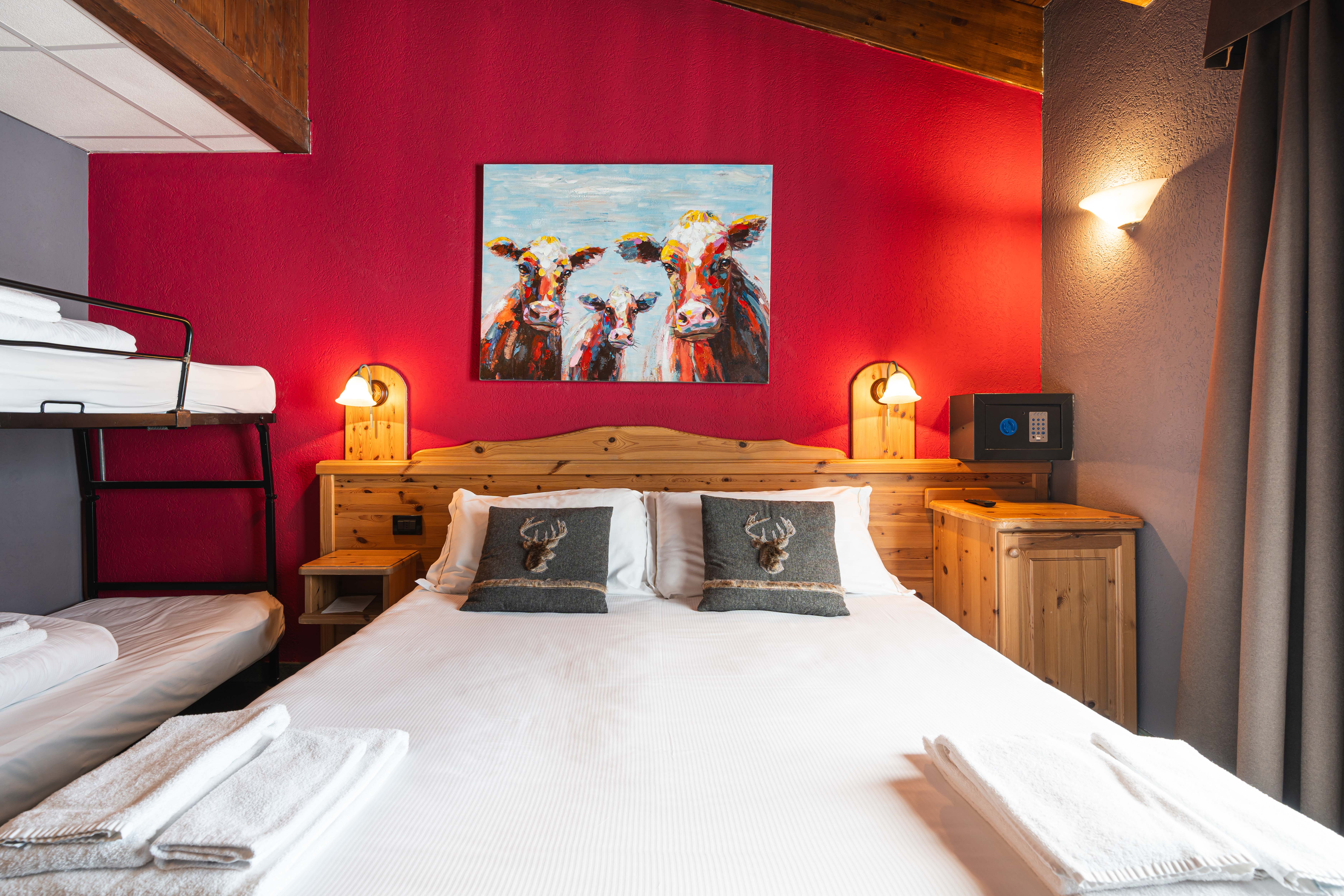 - Tremandsværelse, der kan opstilles med 3 enkeltsenge eller som dobbeltseng + enkeltseng