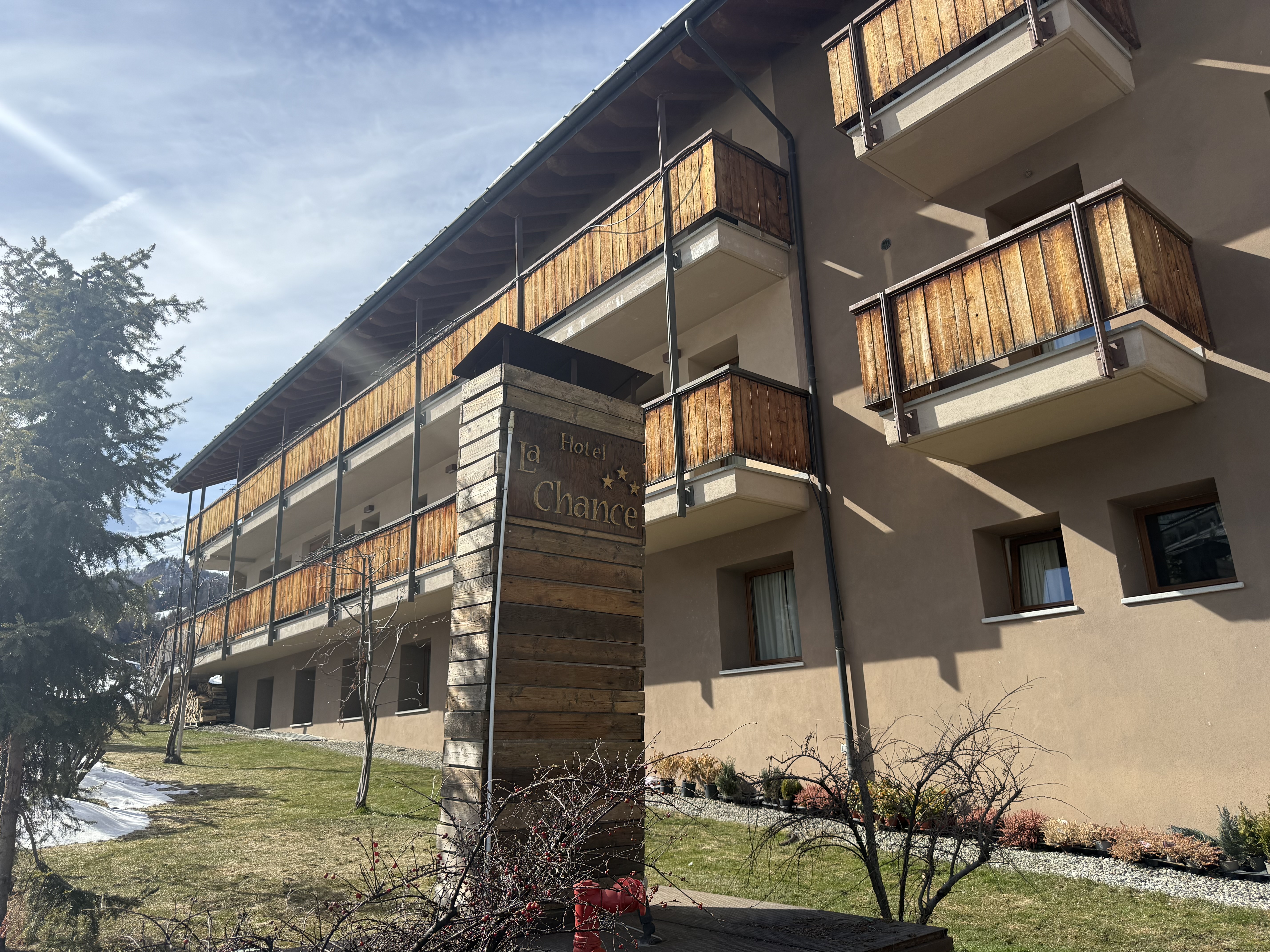 Hotel La Chance er et 3 stjernet superior hotel beliggende centralt i Pila. PÃ¥ hotellet vil i hurtigt føle jer hjemme, da der er en hyggelig og rolig stemning i hotellet lobby, lounge og restaurant. Hotellet er placeret blot fÃ¥ meter fra byens gode børnepister og fun park. Blot 400 meter væk finder du supermarked, skiudlejning og flere forskellige lifte som tager jer op i det smukke skiterræn.Â