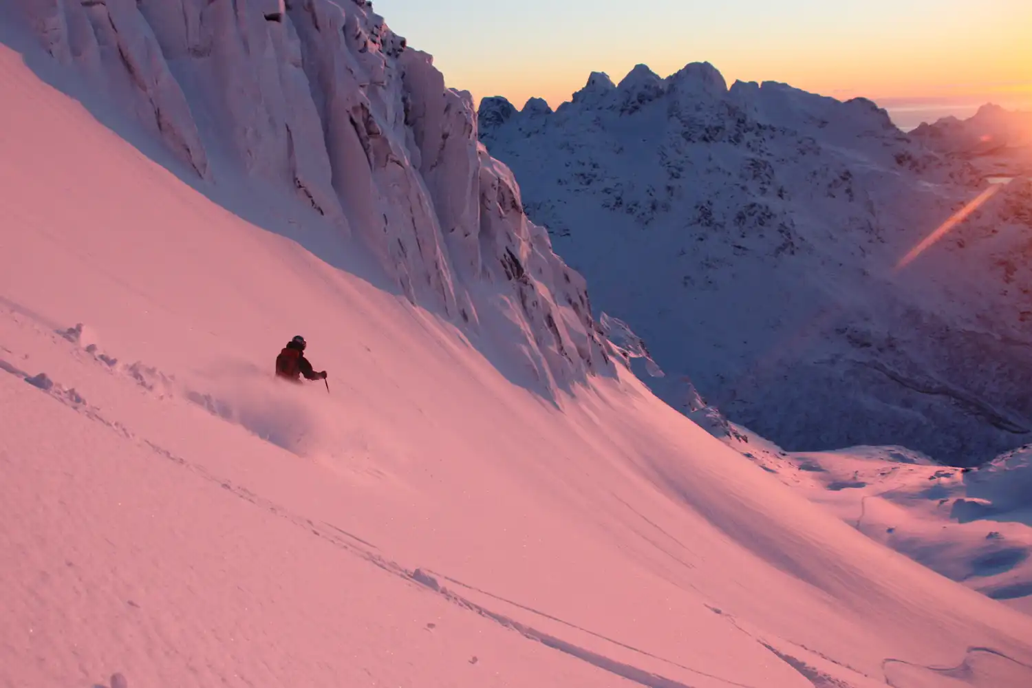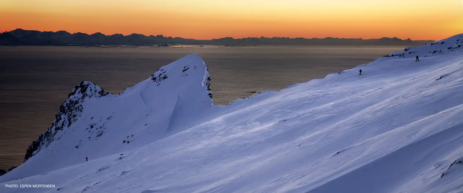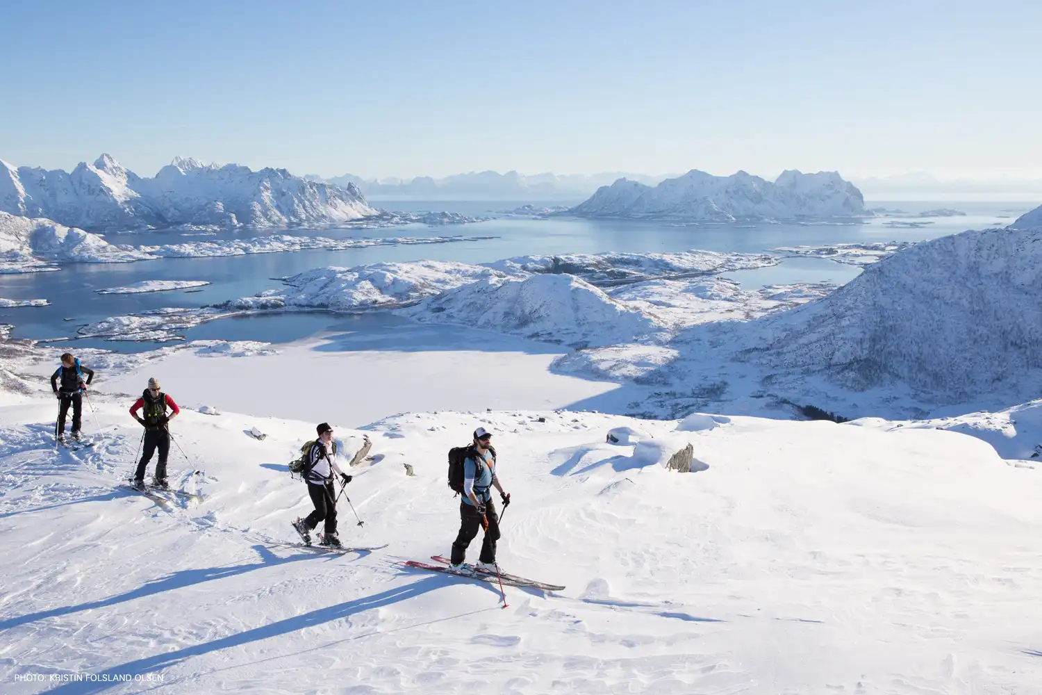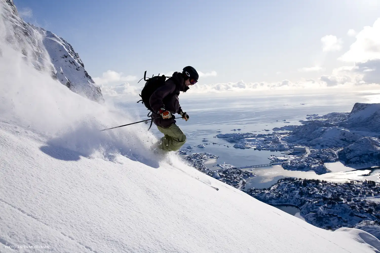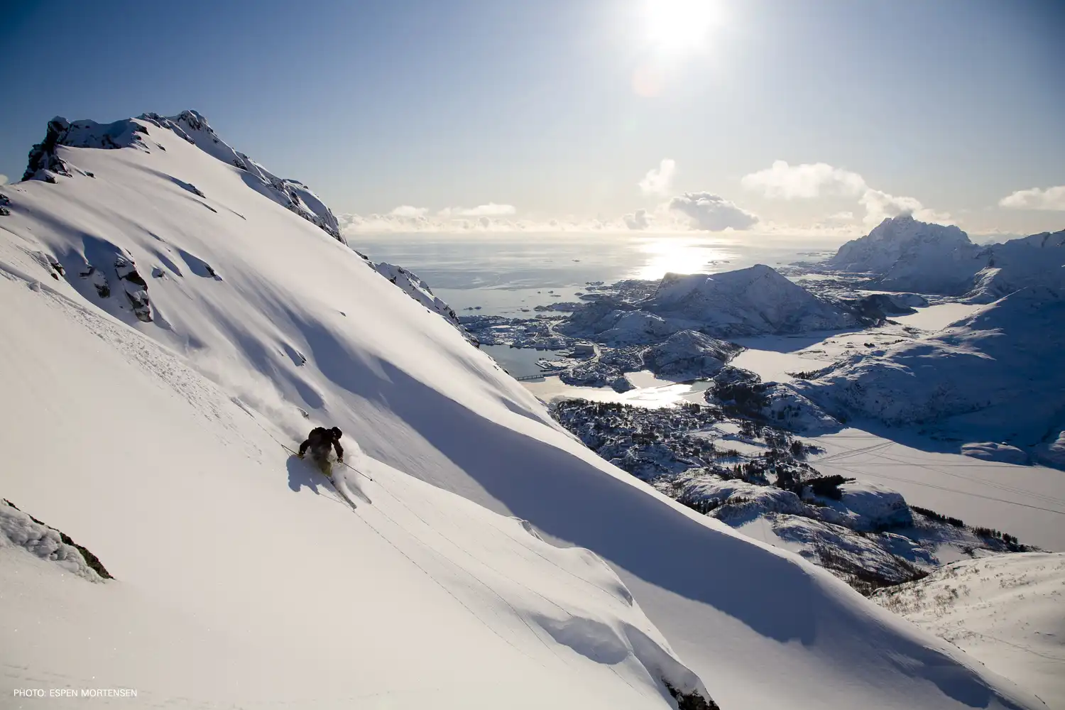 Tromsø er det ideelle rejsemål til randonee og du vil stå på ski fra toppen af et fjeld direkte ned til Atlanterhavet med et fald fra 1.500 m.o.h. ned til 0 m.o.h. Du vil med stor sandsynlighed opleve det magiske nordlys og måske se hvaler i fjorden og lokale fiskere på jagt efter dagens fangst, imens du med en af vores lokale og dygtige bjergguider suser ned mod havet.