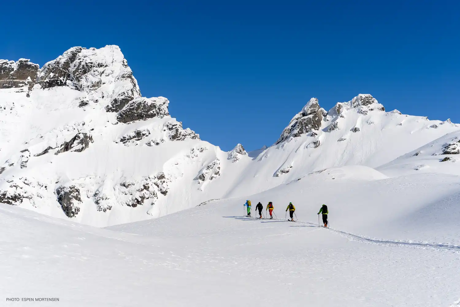 Vi skræddersyer randonee-turen efter jeres behov. Grundet Tromsøs noget afsidesliggende lokalitet og størrelse foreslår vi at I har base i Tromsø da alle de bedste spots og ture med bil kan nås inden for 30 - 90 minutter. Derved sikre vi jer at I kun står på ski hvor sneen, vejret og ikke mindst sikkerheden er i top. Lidt afhængigt af jeres ambitionsniveau og erfaring vil guiden blandt andet tage jer med på randonee i Lyngen Alpes, Kvaløya, Kalfjorden og Senja og det magiske bjerg blåmand eller måske på et af hans andre hemmelige spots. Torben er en meget erfaren bjergguide og er uddannet redningsføre og underviser i lavinefare og arbejder i det private som brandmajor i Tromsø.