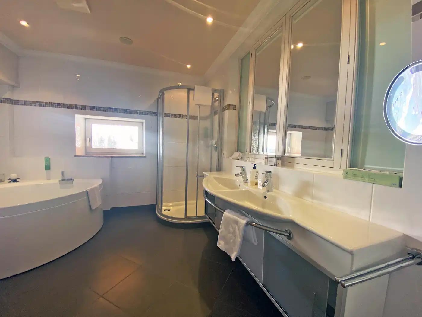 Master bedroom har, udover bad og dobbelt håndvask, også et dejligt stort badekar, hvor du kan få blødgjort dine muskler efter dagens skiløb.