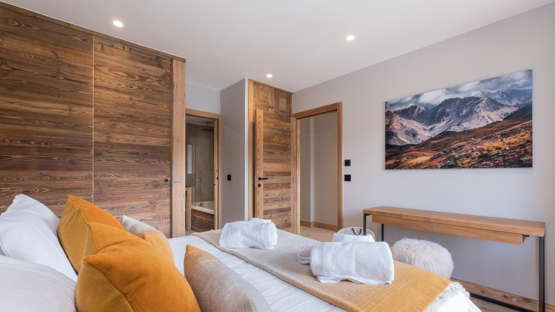 Chalet Acolou har 6 rummelige soveværelser, som alle er indrettet med den typiske glatte alpe-træstil for en varm og hyggelig atmosfære. Hovedsuiten tiltrækker straks opmærksomhed. Udover et eget badeværelse med både badekar og bruser har denne elegante suite også adgang til en privat terrasse for en romantisk stemning. Der er også et kontor, hvis du har brug for et roligt sted til at arbejde i løbet af ugen. De øvrige fem soveværelser består af tre dobbeltværelser med eget badeværelse eller bruser, et dobbelt-/tvillingeværelse med en-suite bruser og balkon samt et værelse med tre køjesenge til børnene, der også har eget badeværelse. Alle badeværelser er rummelige og enkelt designet for at fuldende soveværelserne.