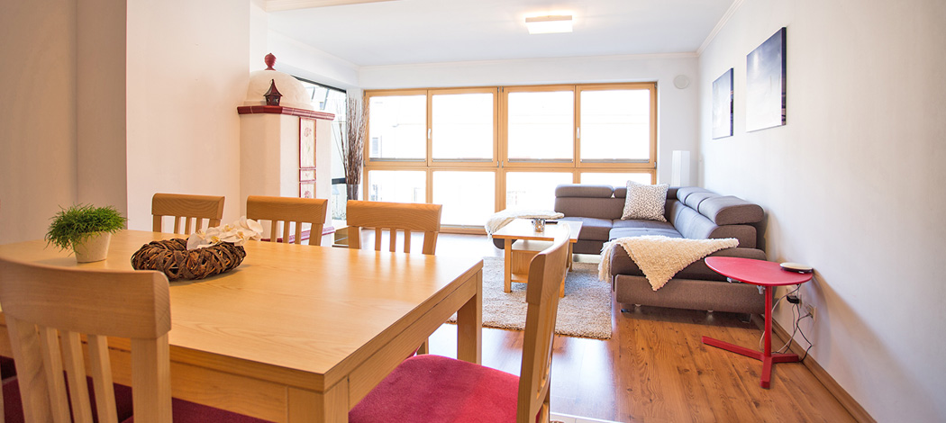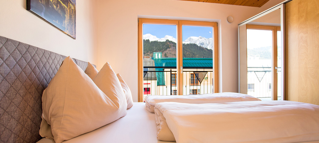 Midt i gågaden i Schladming, tilbyder vi et chalet med 3 store, flotte og nyrenoverede lejligheder – alle med fantastisk alpine udsigt. Lejlighederne ligger helt centralt med små 300 meter til liften, pisten og skiskole. Som noget helt særligt kan man leje skiopbevarings skabe ved liften så i slipper for at skulle bære skiene og opbevarer dem i lejligheden. I lejlighedsbygningen findes et bageri, og under 300 meter væk ligger et supermarked. Så alt er i nærheden af lejlighederne.