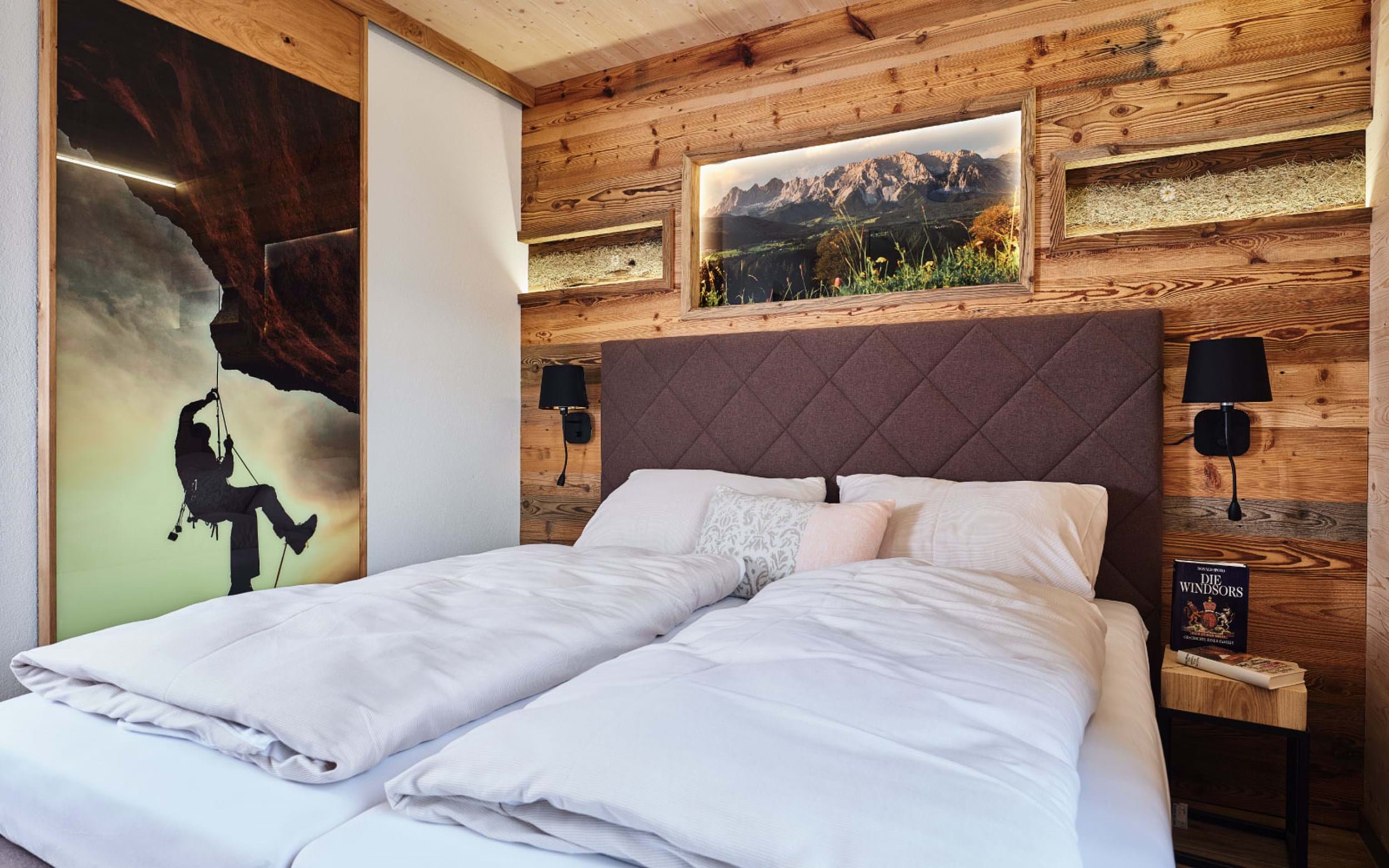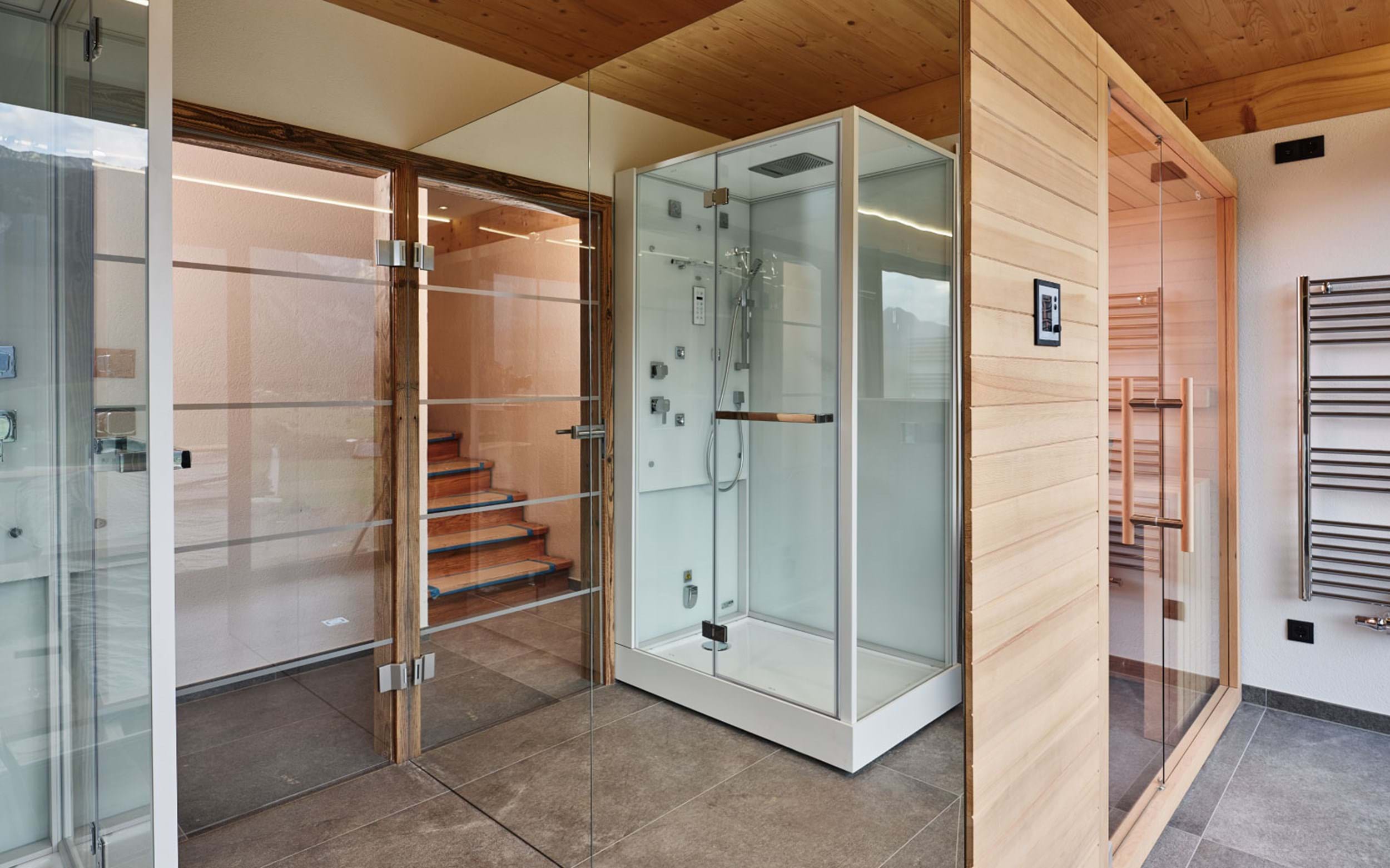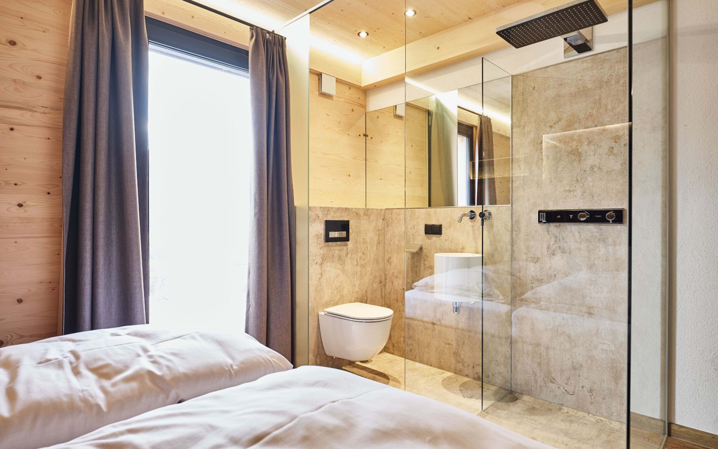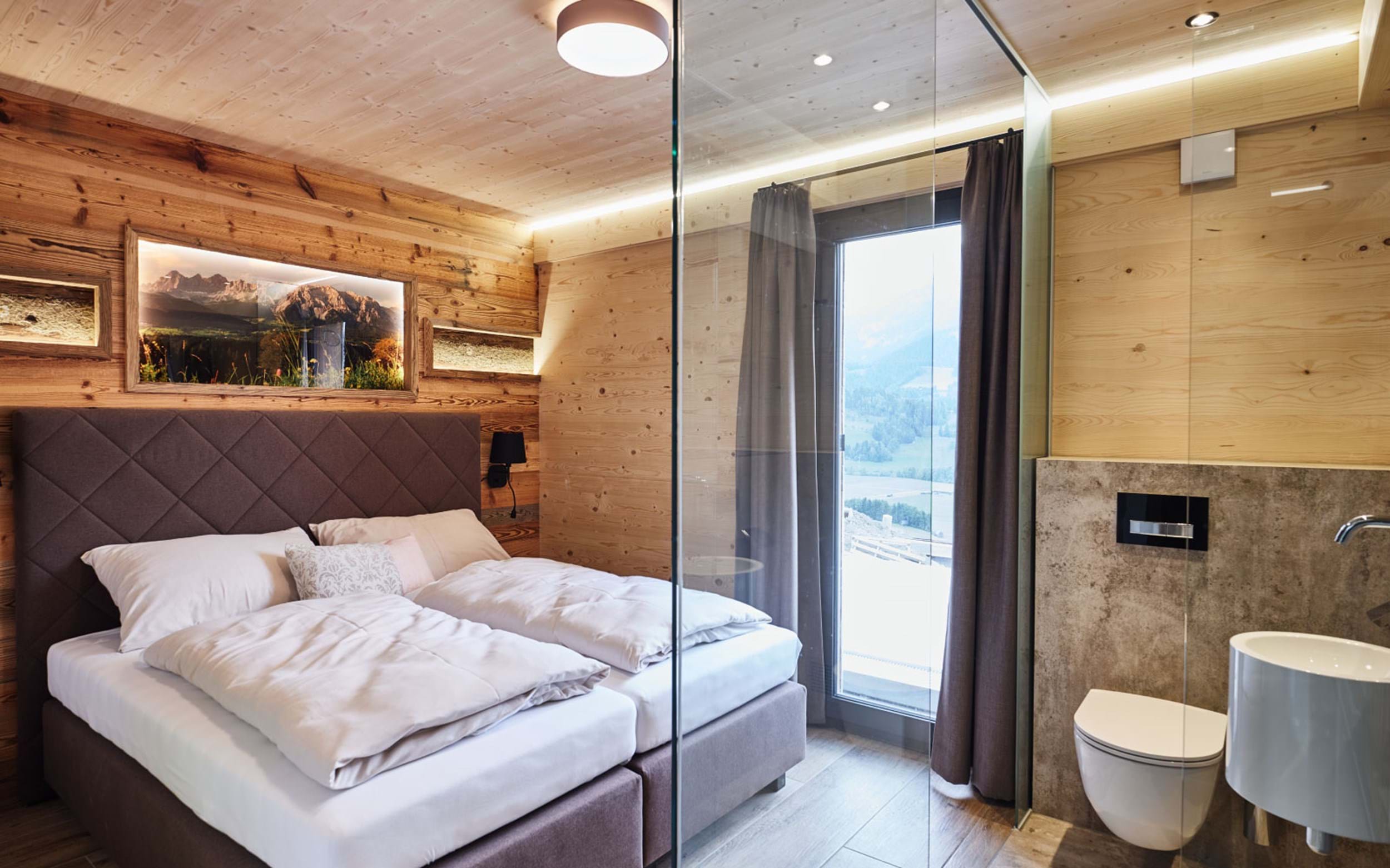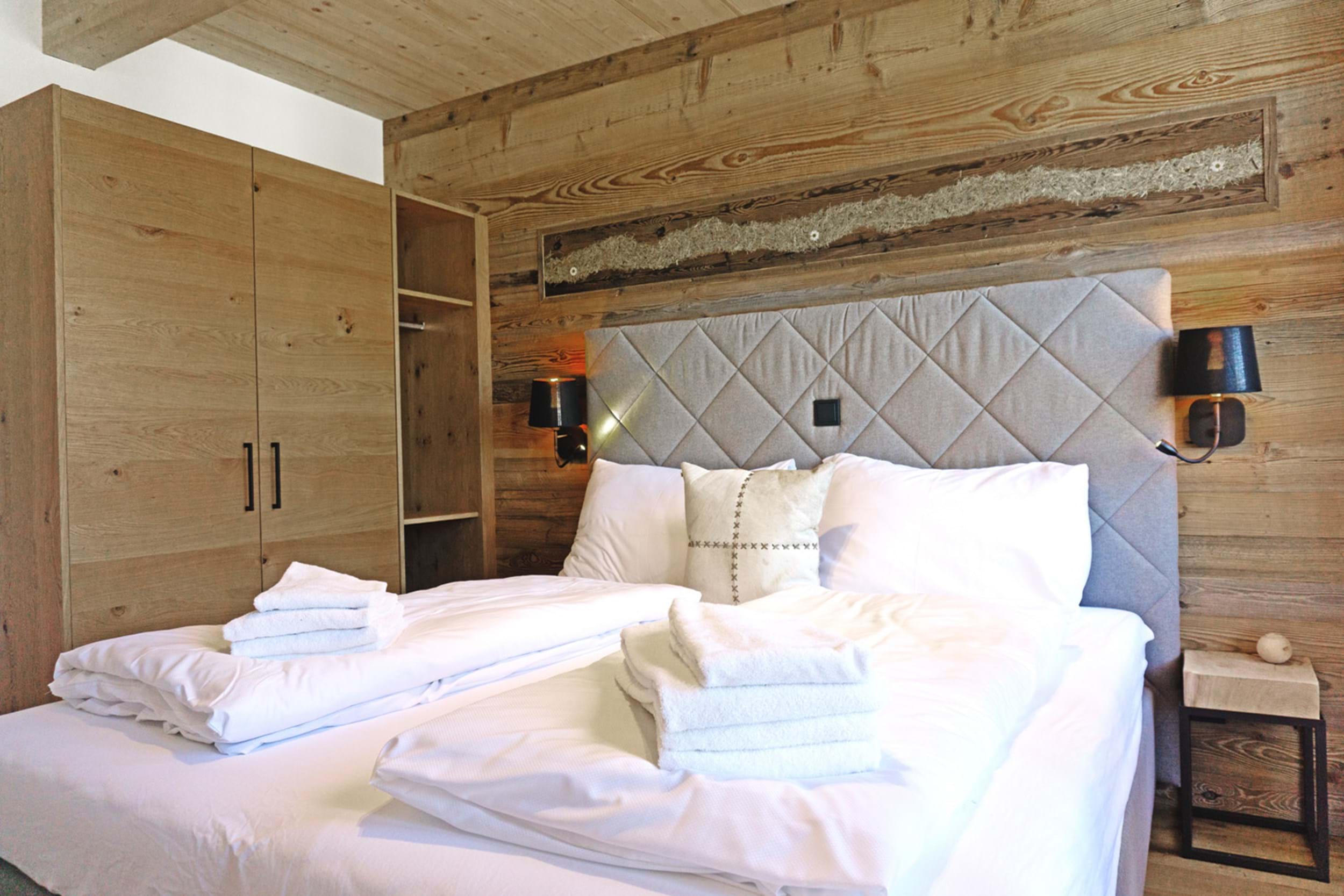 1. Chalet Hauser Kaiblingl: 125m2 stor Chalet til i alt 10 personer. Fire separate soveværelser, tre med dobbeltseng samt et med dobbeltseng samt køjeseng. Fire badeværelser, hvoraf et med sauna, samt to separate toiletter. Stort fuldtudstyret køkken/alrum samt udendørs terrasse med egen opvarmet pool.