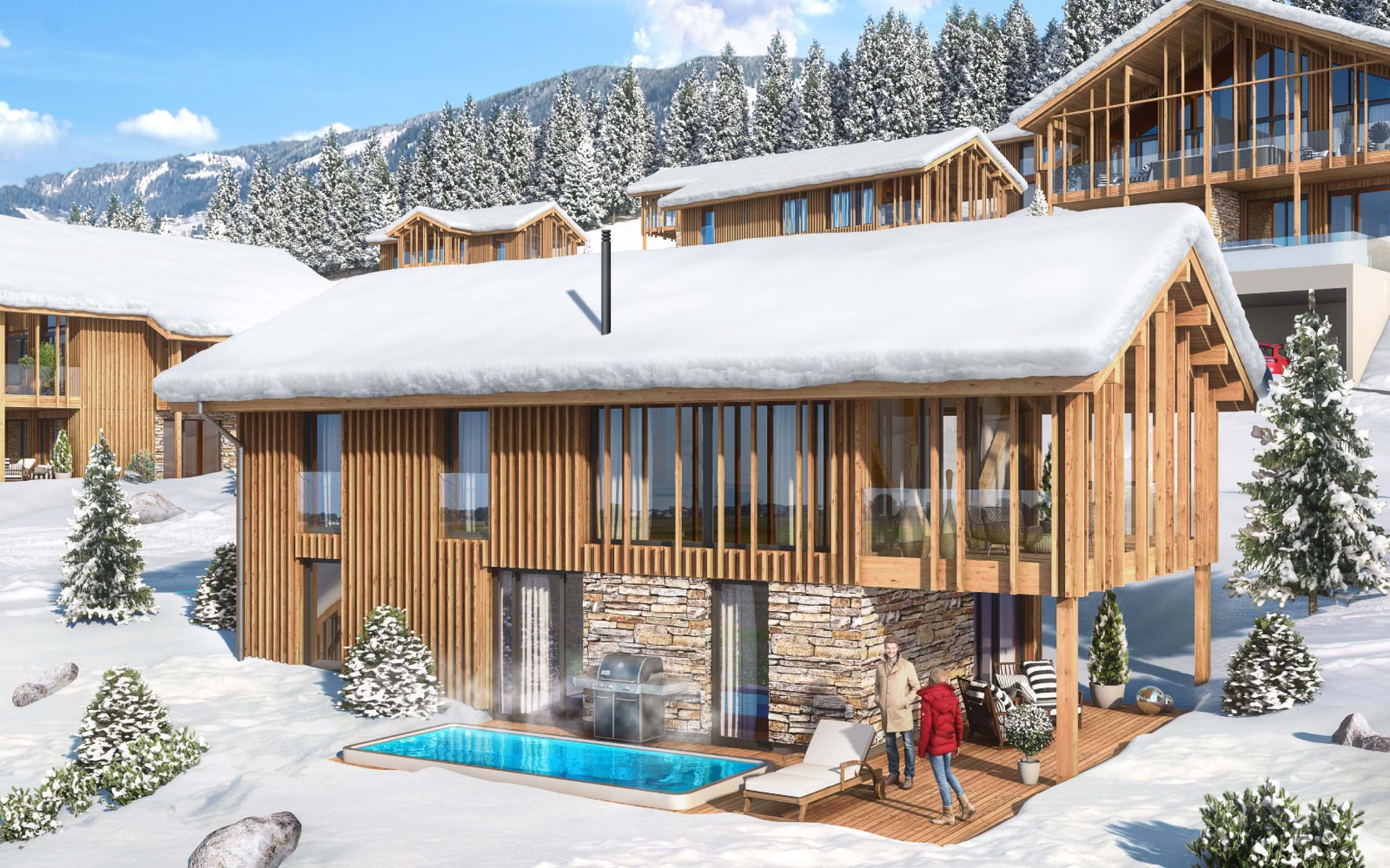 Alle chaletter har egen sauna og enten spabad eller pool.