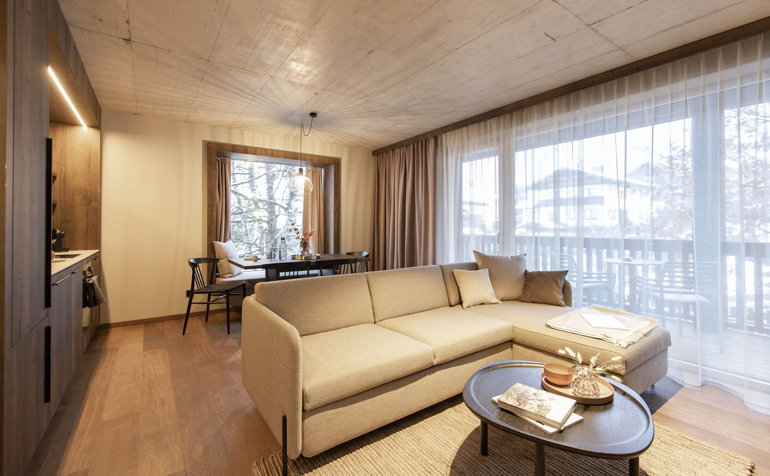 Vores ferielejligheder samt en penthouse-suite byder på førsteklasses arkitektur og unikt interiørdesign med naturlige materialer, håndlavede møbler og eksklusive træelementer.