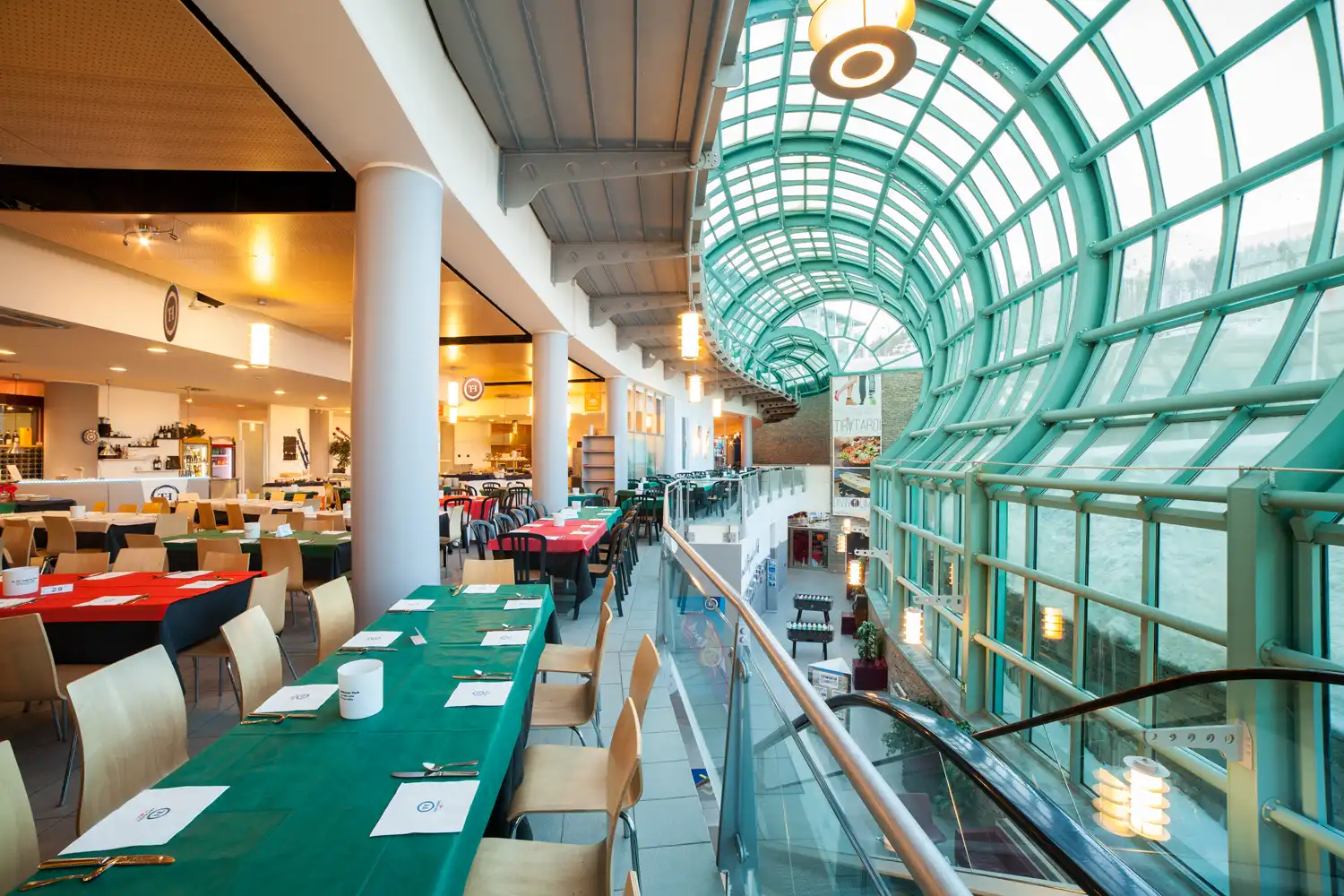 Faciliteterne i Villaggio Olimpico er mange og inkluderer blandt andet flere restauranter, herunder en hyggelig grillterrasse og et traditionelt pizzeria, skiskole, motionscenter og en wellness-afdeling. Sidstnævnte byder på swimming pool, sauna, tyrkisk bad, jacuzzi og en lækker skønhedssalon, som udbyder en bred vifte af behandlinger. Der er adgang til wellness-afdelingen mod betaling. Man skal anvende badehætte og slippers for at bruge poolen.