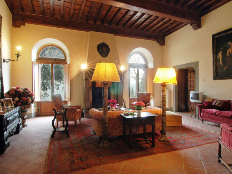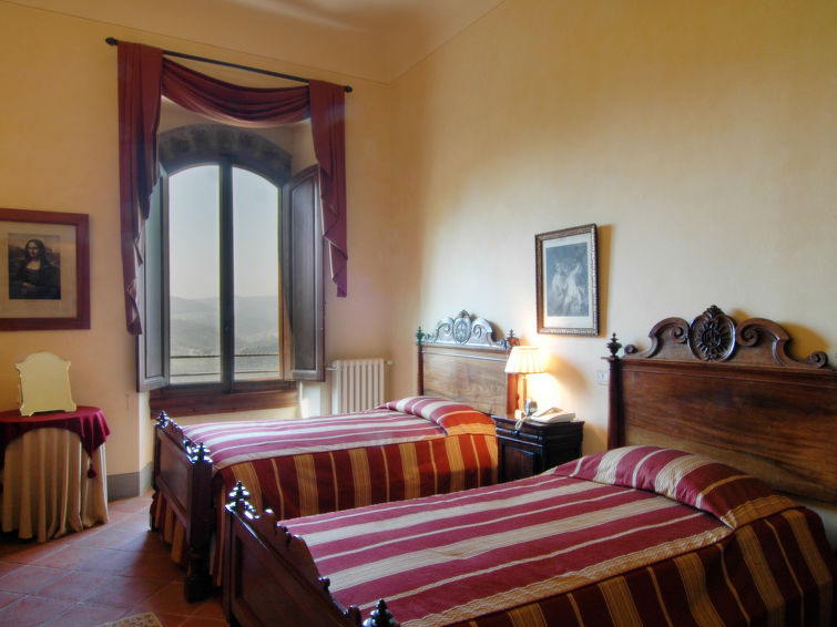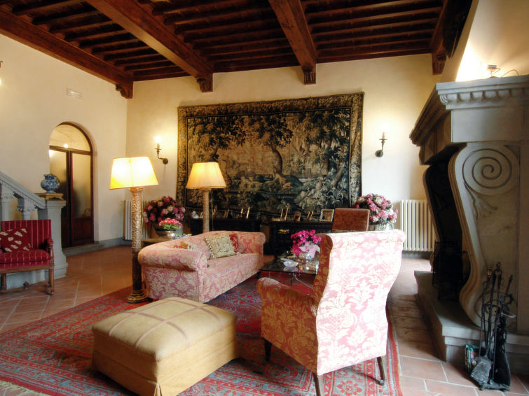 "Castello Volognano" er en super eksklusiv feriebolig beliggende i bakkerne, der omgiver Firenze. Slottet, hvoraf en del dateres til det 11 århundrede, ligger på en bakketop omgivet af vinmarker, olivenlunde og en fantastisk udsigt. Nærmeste by og indkøb findes i Rignano sull'Arno ca. 5 km væk. Der er 22 km til centrum af Firenze. Til ejendommen hører: have (indhegnet), pool (12 x 6 m, 130 - 150 cm dyb, 06.05.-30.09.). Havemøbler, grill. I huset: billard, Opvarmningen betales lokalt (01.11.-15.04.), opvarme kun tilgængelig fra 01.11. til 15.04. Kok muligt (ekstra). Morgenmad efter aftale (ekstra). Parkeringsplads på grunden. Indkøbsforretning 6 km, supermarked 6 km, restaurant 1.5 km, togstation "Pontassieve" 2 km, sandstrand "Versilia" 115 km, badesø "Bilancino" 45 km. Golfbane 13 km. Nærliggende attraktioner: Fiesole 19 km, Vallombrosa 23 km, Greve in Chianti 37 km, San Casciano Val di Pesa 40 km, Arezzo 64 km, Siena 88 km.