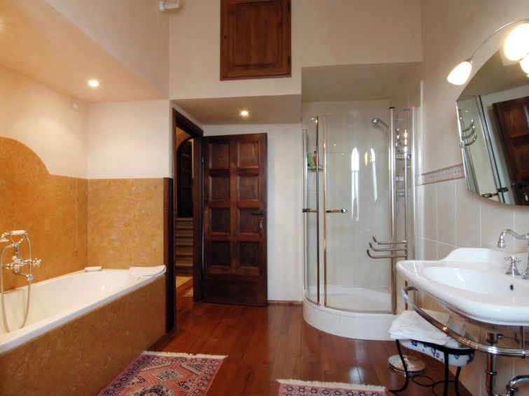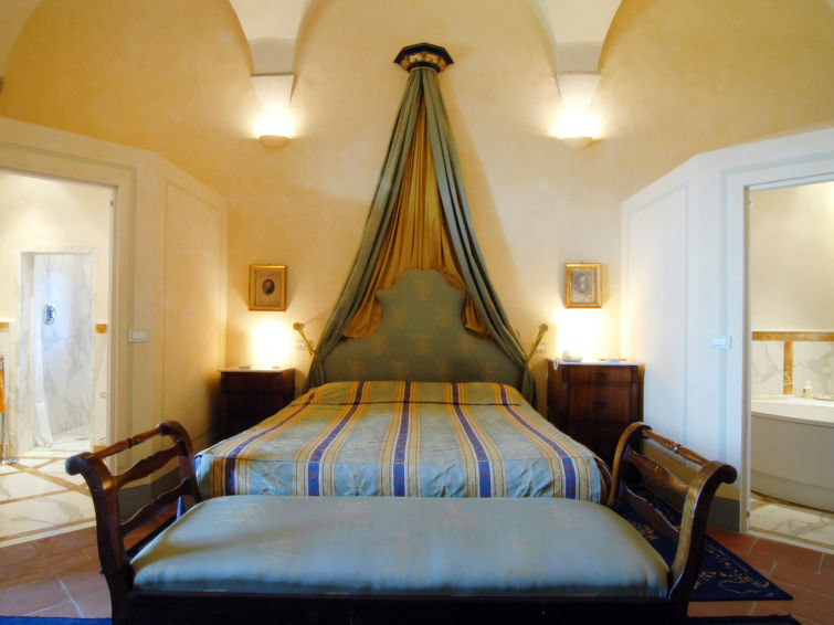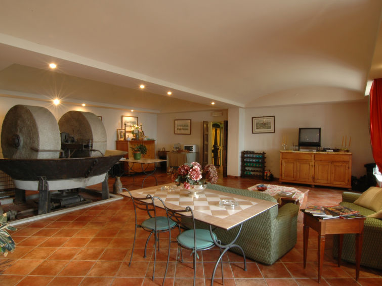 10-værelse-slot på 700 m2 fordelt på 3 etager med plads op til 12 personer. Pæn og antikt indrettet: stor stue med åben kamin og sat-TV. Spisestue. Stor stue 100 m2. Køkken (4 kogeplader, ovn, opvaskemaskine, mikroovn, fryser). Særskilt toilet. Overetage: 1 dobbeltværelse med bad/brus/WC. 1 værelse med 2 senge. 1 værelse med 2 senge. Brus/bidet/WC, boblebad. 2. Overetage: 1 dobbeltværelse med bad/bidet/WC. 1 værelse med 2 senge. 1 værelse med 2 senge. Bad/brus/WC. 3. Overetage: stort legeværelse med sat-TV. Til benyttelse: vaskemaskine.