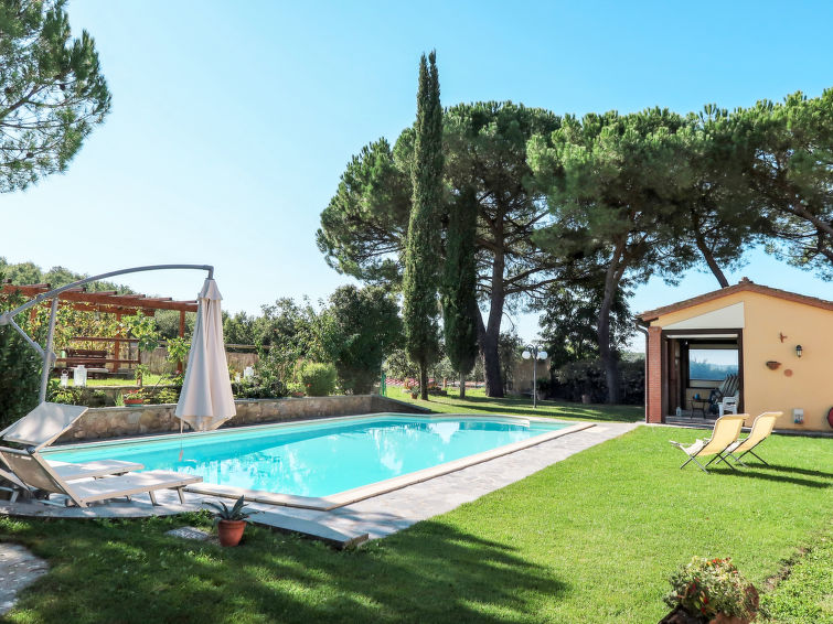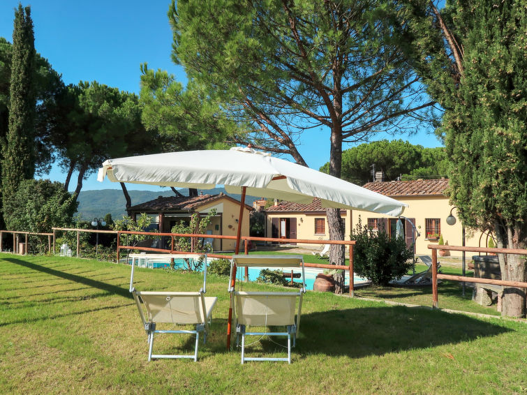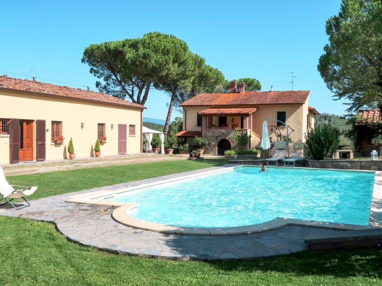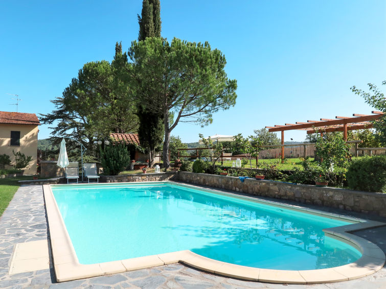 Residens "Cedri Alti" ligger omgivet af træer og marker knap 2 km fra landsbyen Ambra, hvor man finder en købmand og lidt spisesteder. Der er 4 lejligheder i bygningen. 5 km fra bymidten af Bucine, 32.5 km fra bymidten af Arezzo. Til ejendommen hører: grund 1 ha (indhegnet), have med græsplæne og træer, græsmark, frugthave, pool (12 x 6 m, 70 - 240 cm dyb, åben i perioden 20.04.-20.10.). Udendørs brus, pool hus, bordtennis, terrasse, grill. I huset: bordfodbold. Parkeringsplads. Supermarked 7 km, togstation "Bucine" 3 km, pool 1 km. Tennis 1 km, ridehal 1 km.