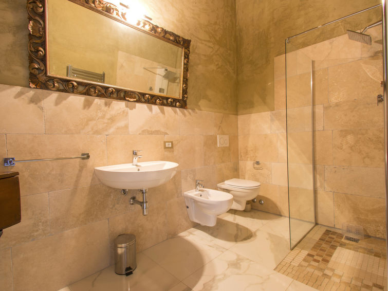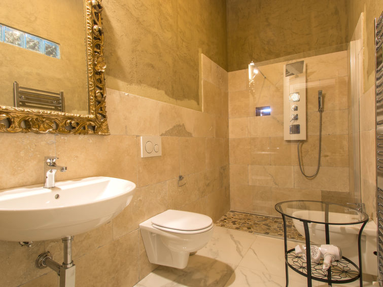 Indvendigt findes: 8 værelser, 7 soveværelse r, 8 badeværelser, fordelt på 2 etager, restaureret i 2018. Bemærk: Ikke-ryger hus. Indretning: god, smagfuld, behagelig, med nogle antikke møbler, stengulv. Udstyr: satellit-tv; stereoanlæg; internetadgang Wi-Fi (inkluderet); vaskemaskine, strygejern / strygebræt; alarmsystem; sikker; pellet / flis opvarmning; aircondition (ikke tilgængelig i alle værelser) opbevaringsrum i huset. Værelse layout: Stue (stueetage): møbelsuite, pejs, udgang til terrasse. Fra stuen trapper til øverste niveauer. Spiseplads: i køkkenet. Køkken: separat (stueetage), pejs, udgang til terrasse. Køkken / madlavningsudstyr: 5 gasringe, ovn, mikroovn, opvaskemaskine, køleskab i amerikansk stil, kaffemaskine, vandkedel, brødrister. Soveværelse 1 (stueetage): dobbeltseng (1,60 m bred), udgang. Yderligere oplysninger: myggenet, direkte adgang til badeværelse nr. 2. Soveværelse 2 (etage 1): dobbeltseng (1,60 m bred). Yderligere oplysninger: myggenet, direkte adgang til badeværelse nr. 3. Soveværelse 3 (etage 1): dobbeltseng (1,60 m bred). Yderligere oplysninger: myggenet, direkte adgang til badeværelse nr. 5. Soveværelse 4 (etage 1): dobbeltseng (1,60 m bred). Yderligere oplysninger: myggenet, direkte adgang til badeværelse nr. 4. Soveværelse 5 (etage 1): dobbeltseng (1,60 m bred). Yderligere oplysninger: myggenet, direkte adgang til badeværelse nr. 6. Soveværelse 6 (etage 1): dobbeltseng (1,60 m bred). Yderligere oplysninger: myggenet, direkte adgang til badeværelse nr. 7. Soveværelse 7 (etage 1): 2 x enkeltseng det er tilladt at sammensætte senge. Yderligere oplysninger: myggenet, direkte adgang til badeværelse nr. 8. Badeværelse 1 (stueetage): brusebad, toilet. Badeværelse 2 (stueetage, kun adgang fra et soveværelse): brusebad, toilet. Badeværelse 3 (etage 1, kun adgang fra et soveværelse): brusebad, toilet. Badeværelse 4 (etage 1, kun adgang fra et soveværelse): brusebad, toilet. Badeværelse 5 (etage 1, kun adgang fra et soveværelse): brusebad, toilet. Badeværelse 6 (etage 1, kun adgang fra et soveværelse): brusebad, toilet. Badeværelse 7 (etage 1, kun adgang fra et soveværelse): brusebad, toilet. Badeværelse 8 (etage 1, kun adgang fra et soveværelse): brusebad, toilet.