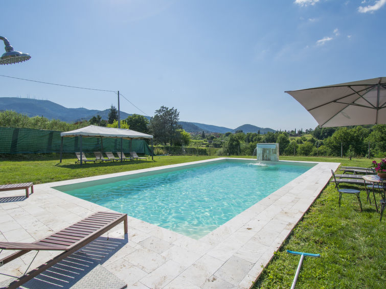 Dejlig renoveret traditionel Italiensk landejendom på ca. 370 m2 smukt beliggende i landlige omgivelser. Til ejendommen hører: Privat parkering. ca. 10000 m², lukket grund (hegn, elektrisk indgangsport), i en bjergskråning, rækkehus, træer, med planter, græsplæne, vinranker, oliventræer. Havevedligeholdelse af gartneren. Udendørs faciliteter (privat brug): terrasse 160 m², terrasse 70 m² (overdækket), møblering forudsat, grill i mursten. Pool (privat brug): 12,5 x 6,5 m, 1,50 m dyb, 02.05.20-03.10.20. Poolområde: flisebelagt, græsplæne til solbadning, 10 liggestole, 8 liggestole, udvendig bruser.