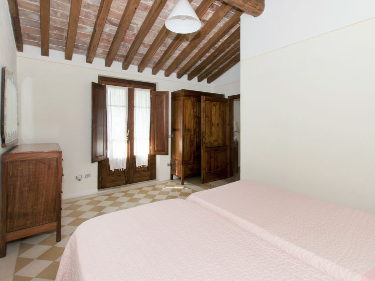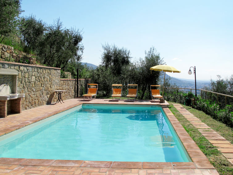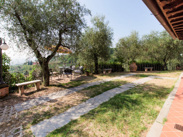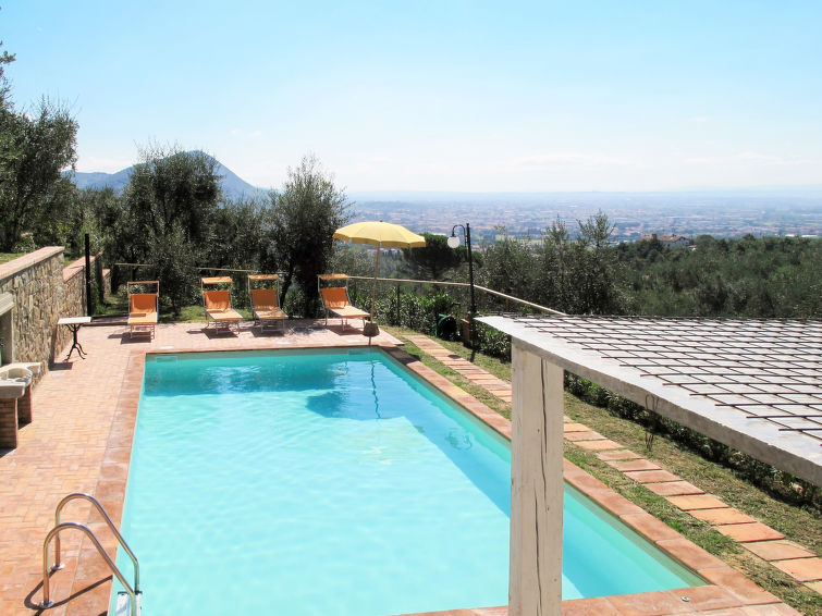 Smuk, rustikt, komfortabelt hus på landet "Terre di Jacopo", 150 meter over havets overflade, omgivet af træer og marker. 4 km fra centrum af Montecatini Terme, 30 km fra centrum af Lucca, 50 km fra bymidten af Firenze, isoleret, solrige beliggenhed ved bakke, 55 km fra havet, i det grønne. Til medbenyttelse: jacuzzi. Til ejendommen hører: stor, smuk have i forskellige niveauer, 2 ha med planter og træer, græsmark, pool indhegnet (9 x 4 m, 130 - 180 cm dyb, 25.04.-15.10.). Udendørs brus, terrasse, terrasse, havemøbler, Poolen vedligeholdes af ejeren/gartneren. Endvidere kan arrangeres: sauna, dampbad, whirlpool (alt ekstra). 400 m lang, smal tilkørsel (200 m natursti). Parkeringsplads på grunden. Fødevarebutik 600 m, supermarked 1.5 km, restaurant 200 m, togstation "Montecatini Terme" 4 km, sandstrand "Lido di Camaiore" 55 km. Golfbane (18 hul) 10 km. Salg af lokale gårdprodukter.