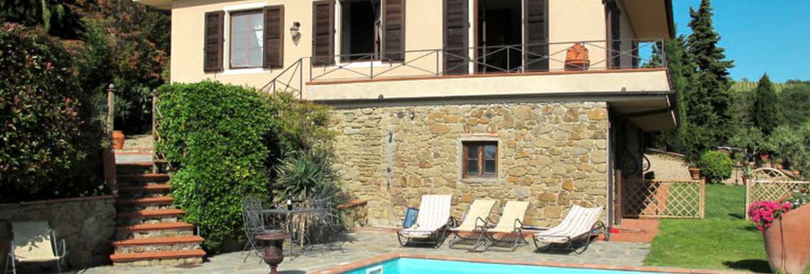 Ruffoli 5 km fra Greve in Chianti: Smuk, komfortabelt feriehytte "Belvedere", omgivet af træer, marker og vingård. 4.5 km fra bymidten af Greve in Chianti, 7 km fra centrum af Panzano, 30 km fra bymidten af Firenze, isoleret, solrige beliggenhed på en bakke. Til ejendommen hører: smuk, velplejet have i forskellige niveauer, 1'000 m2 (indhegnet) med græsplæne og træer, pool (9 x 5 m, 21.03.-31.10.). 1.3 km lang, tilkørsel (natursti). Parkeringsplads på grunden. Supermarked 4.5 km, restaurant 4.5 km, busstoppested 4.5 km, pool 4.5 km. Golfbane (9 hul) 20 km.