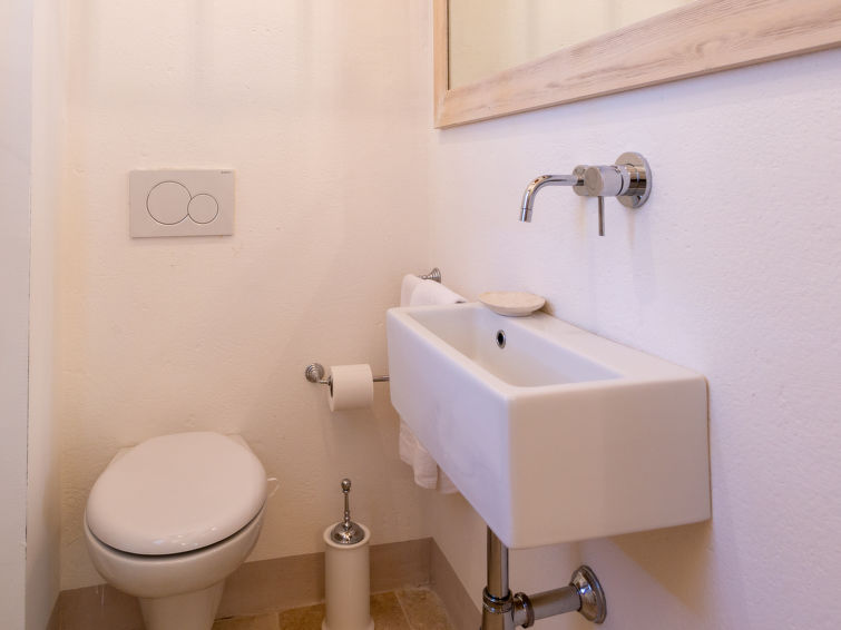 4-værelse-villa på 120 m2 fordelt på 3 etager med plads til 8 personer. Rummelig, meget komfortabelt og smagfuld indrettet: stor stue/spisestue 37 m2 med sat-TV og fladskærms TV. Udgang til have, til terrasse. Lille køkken 8 m2 (5 kogeplader, ovn, opvaskemaskine, mikroovn, fryser, elektrisk kaffemaskine). Udgang til terrasse. Særskilt toilet. Træ-opvarmning. Nederste etage: 1 stort værelse med 1 dobbelt sovesofa og 1 dobbeltseng. Brus/WC. Overetage: 1 dobbeltværelse 14 m2 med brus/bidet/WC. 1 dobbeltværelse 12 m2. Brus/bidet/WC. Havemøbler, grill. Udsigt over landskabet. Til benyttelse: vaskemaskine, højstol. Internet (trådløs LAN [WLAN], gratis). Velegnet for familier.