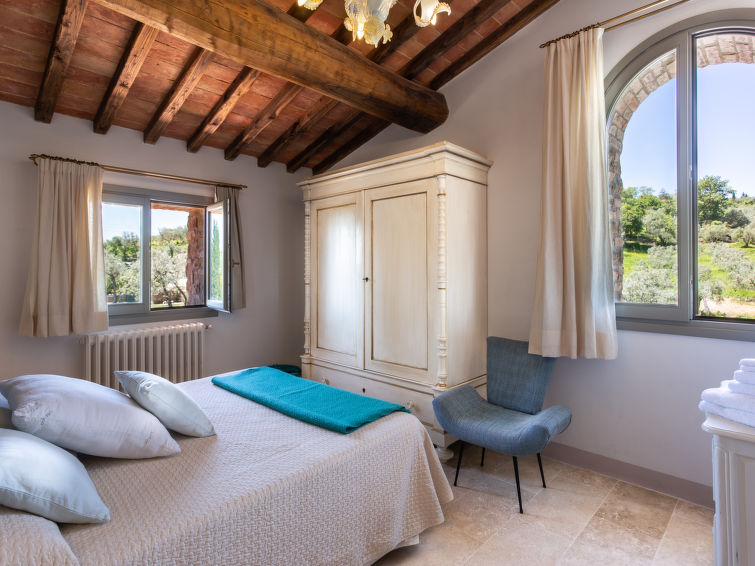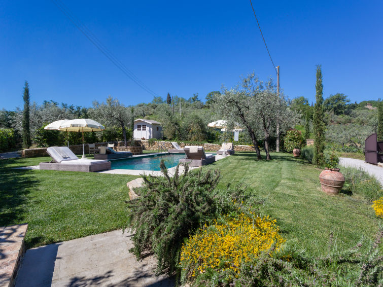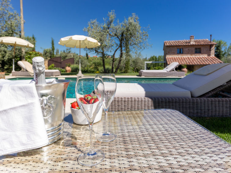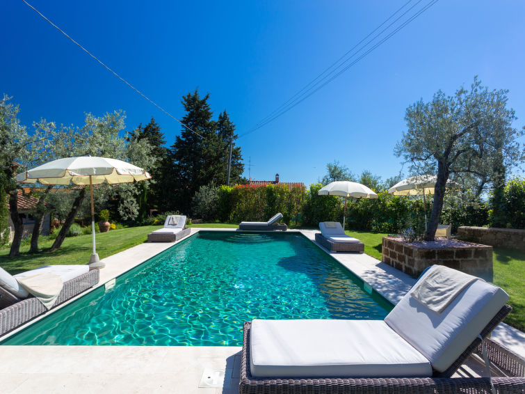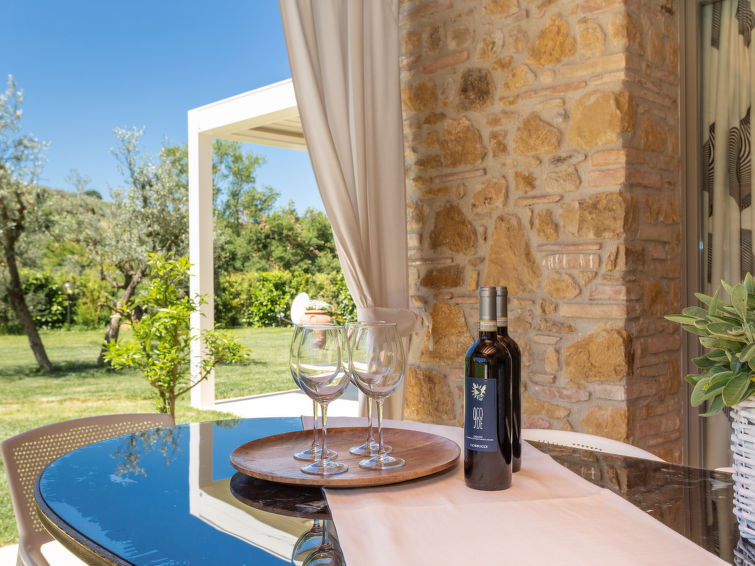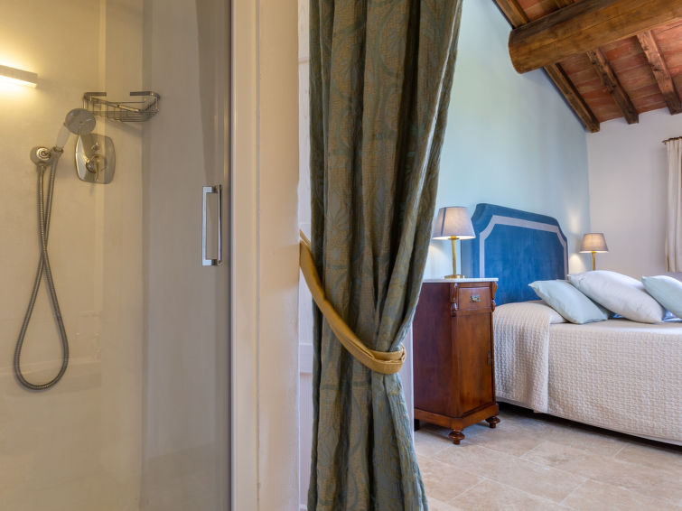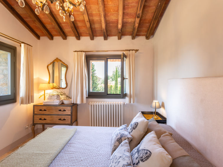 Den meget smukke og luksuriøse Villa Meletta er bygget i 2015 og ligger roligt og smukt omgivet af vinmarker ca. 3 km fra bymidten af Gambassi Terme, 19 km fra centrum af San Gimignano, 32 km fra bymidten af Volterra. Til ejendommen hører: lille have 1'000 m2 (indhegnet), pool (5 x 11 m, 150 - 150 cm dyb, kan benyttes i perioden 06.05.-30.09. og 01.05.-30.09.) med salt-elektrolys. I huset: vaskemaskine, Opvarmningen betales lokalt (01.11.-15.04.), opvarmning kun tilgængelig fra 01.11. til 15.04. Skift af linned 1 gang ugentlig (yderlige ekstras). Udskiftning af håndklæder 1 gang ugentlig (yderlige ekstras). Tilkørsel til huset (150 m natursti). Parkeringsplads ved huset i 30 m. Indkøbsforretning 2 km, restaurant 3 km. Golfbane (18 hul) 20 km. Nærliggende attraktioner: Certaldo 8 km, Monteriggioni 11 km, Barberino Val D'elsa 26 km, San Donato in poggio 36 km, Siena 55 km, Firenze 59 km. Bemærk venligst: bil anbefales.