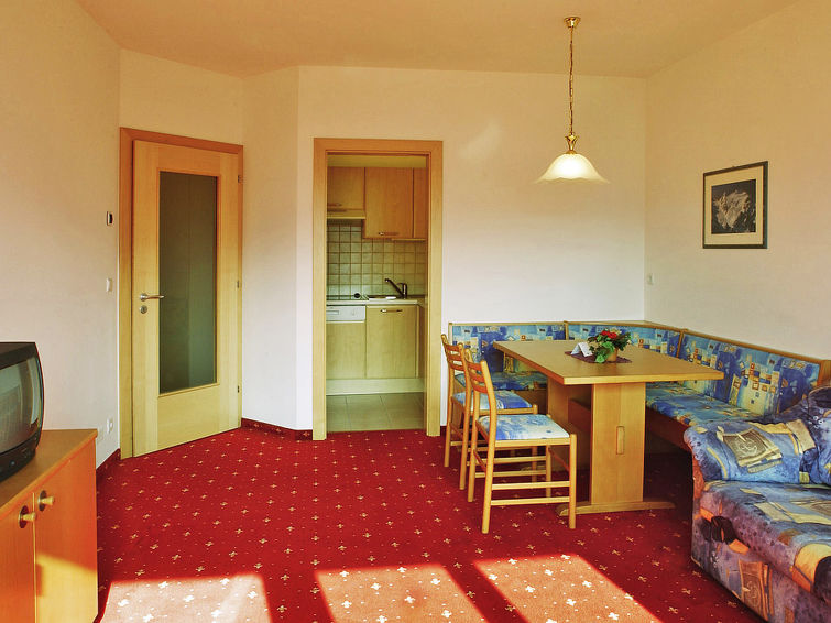 1,5-værelses lejlighed på 32 m2 med plads til 2 personer. Ikke-ryger hus. Indretning: lys, behagelig, klinkegulv, tæppe. Udstyr: satellit-tv (2 tv'er); internetadgang Wi-Fi (inkluderet); sikker; olie centralvarme. Værelse layout: Stue / soveværelse: sofa, dobbeltseng. Spiseplads: (hjørnebænk) i stuen. Lille køkken: separat. Køkken / køkkenudstyr: 4 keramiske kogeplader, mikroovn, opvaskemaskine, køleskab, kaffemaskine, vandkedel, brødrister. Sanitær 1: brusebad, toilet. Udvendig (privat brug): Møbleret altan.