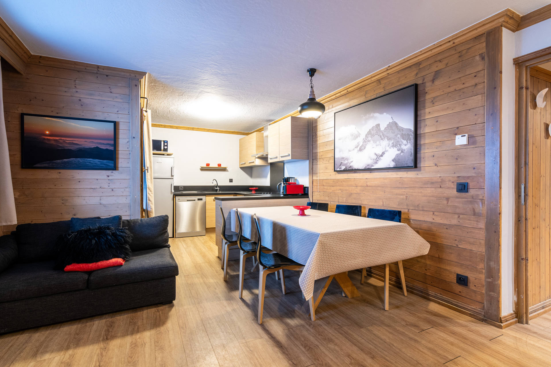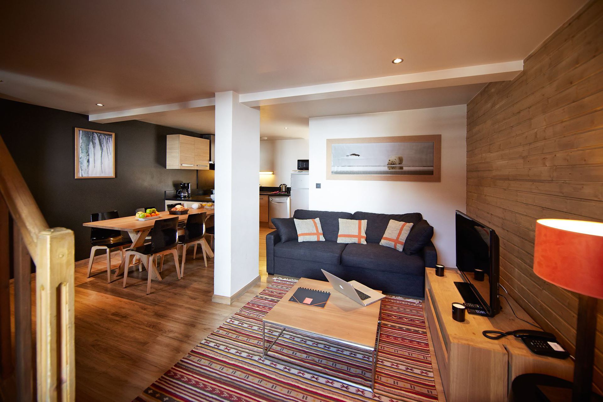 Chaletlejlighederne er lyse og rummelige, og har egen pejs sam balkon. Efter en lang dag på ski kan man nyde de mange muligheder i chalettet, som tæller et dejligt wellness-afdeling, en sportsbutik og en lækker restaurant. Sidstnævnte, Savoyard-restauranten ’La Ferme de Rosalie’, byder på udsøgte, franske delikatesser.