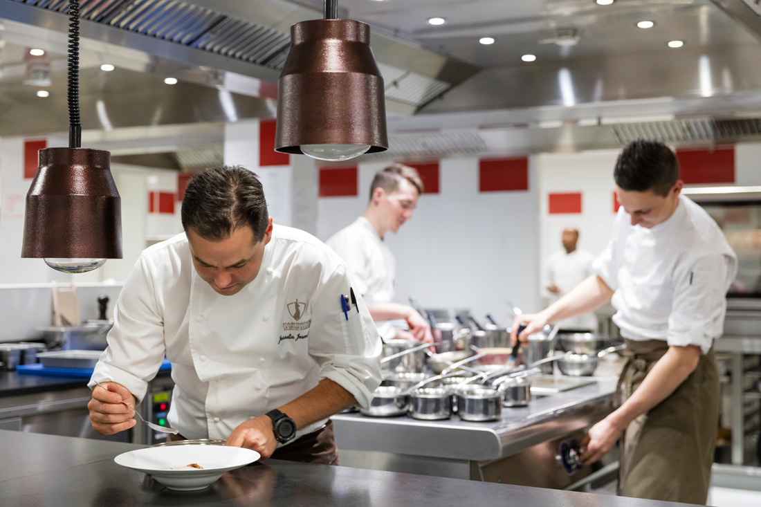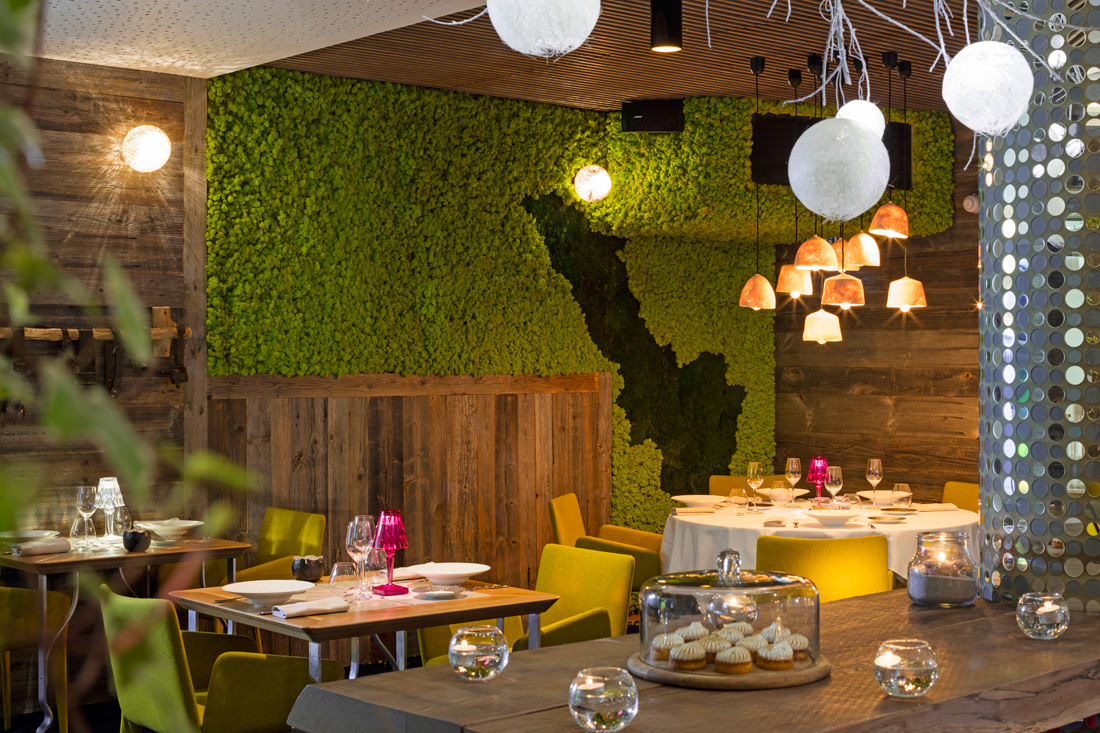 Prisvindende Romuald Fassenet og Josselin Jeanblanc tilbereder fremragende gourmet mad på hotellets to restauranter. Her får enhver madelsker et fantastisk måltid med mad inspireret af den forfinede bjergluft. Restauranten byder også på hyggelig atmosfære med moderne og alpin inspireret interiør. Som en særlig oplevelse tilbyder Hotel Pashmina et restaurant besøg på Le Chalet de la Marine oppe på bjerget. Her bliver man kørt op i snemobiler og snescootere, til et måltid i de bedste omgivelser.