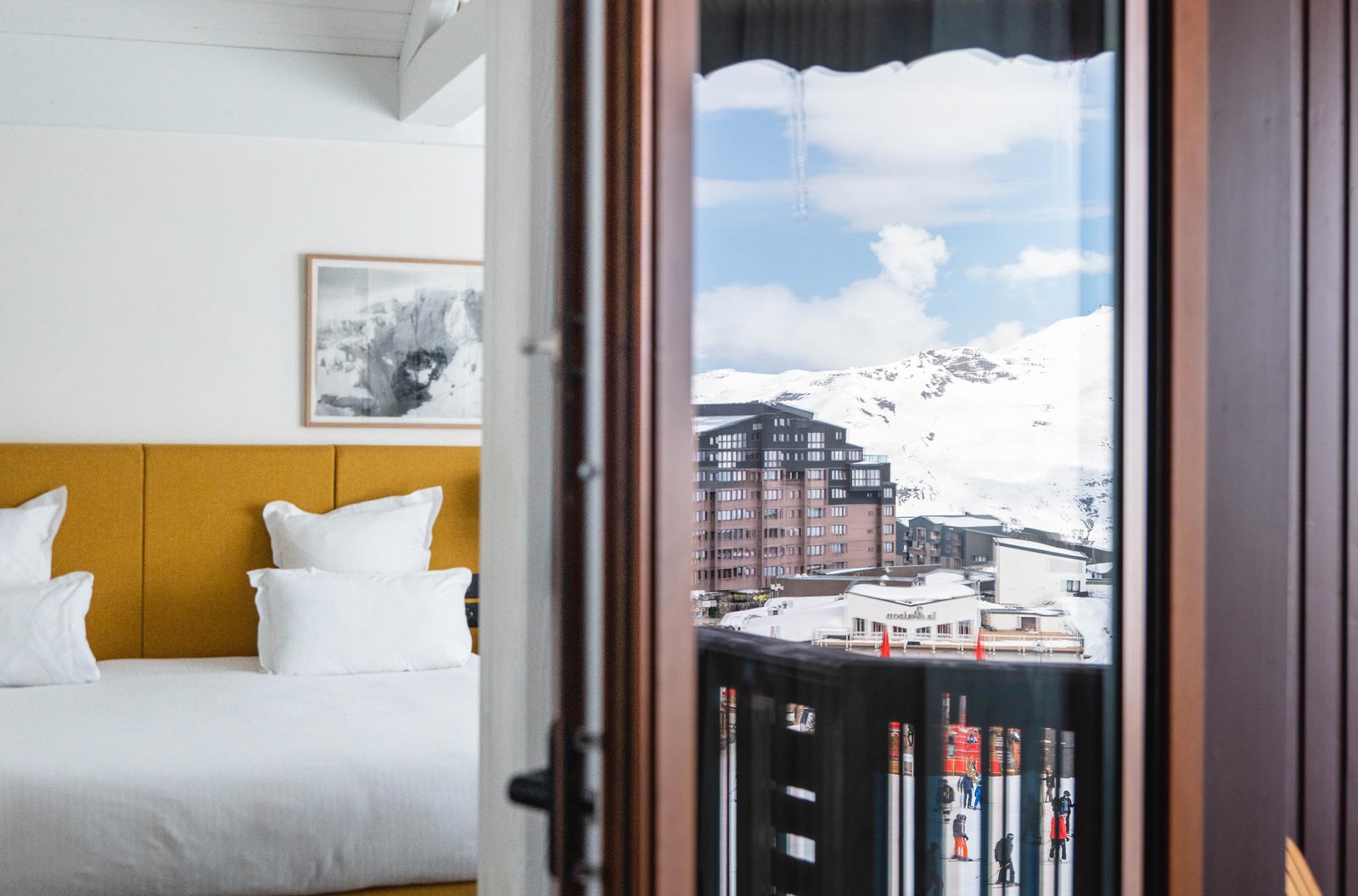 Privilege med udsigt til pisten eller byen, 27m2 (2-4 personer)2 voksne og 2 børn pÃ¥ under 12 Ã¥r. Værelset har balkon og badeværelse med bruser. Værelset har 1 dobbeltseng eller 2 enkeltsenge, børnene sover i en køjeseng.Â