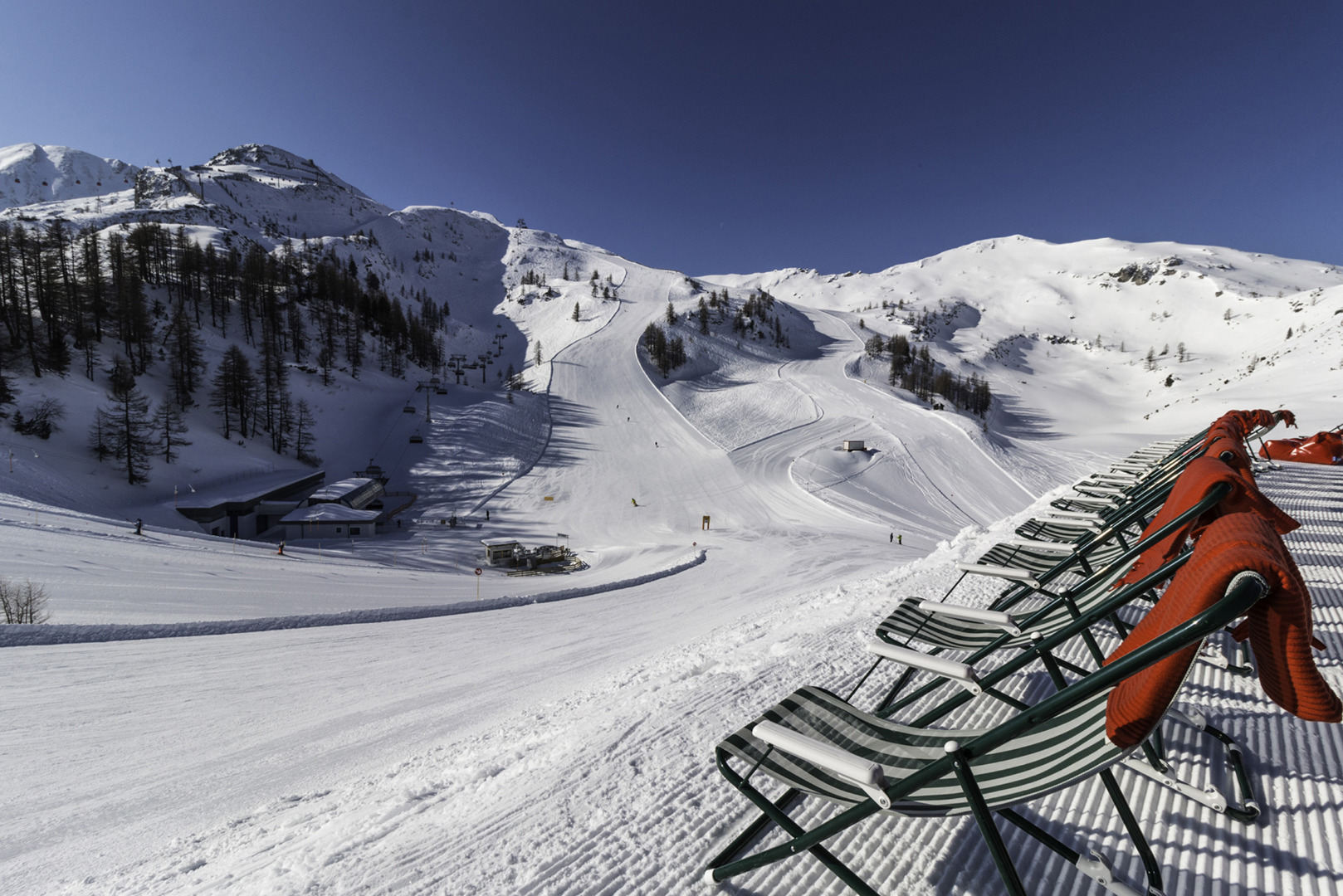 4,3 km sorte. Pisterne er forbundet af 14 lifter, hvoraf seks er stolelifter, og seks er slæbelifter samt en kabelbane og en gondollift. Hele området ligger i 1350 til 2188 meters højde.